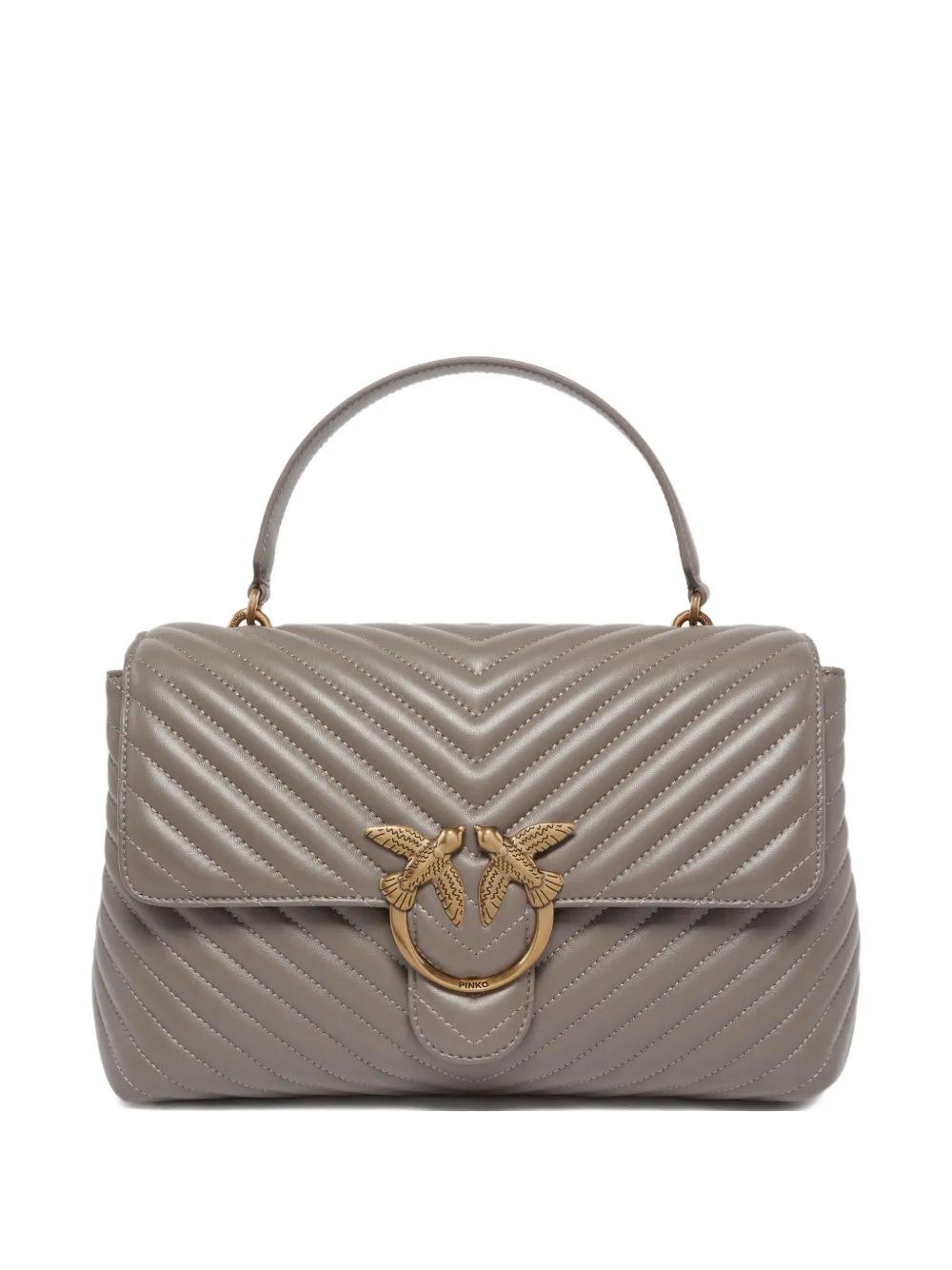 grey chevron quilting top handle Love Birds clasp sheepskin leather flap closure