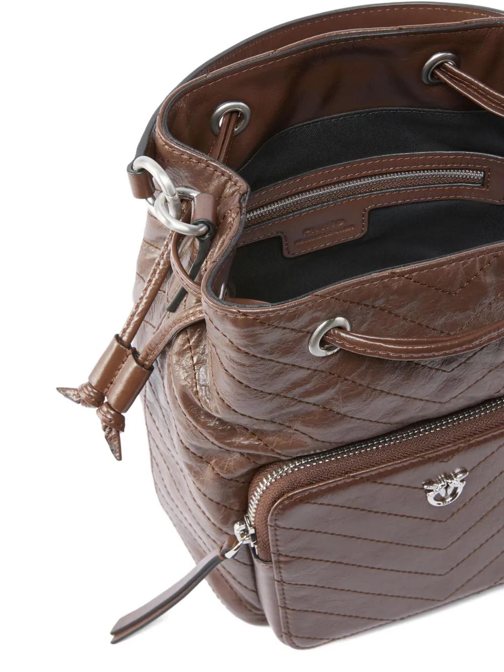 brown chevron quilting front zip pocket drawstring fastening top handle silver-tone hardware