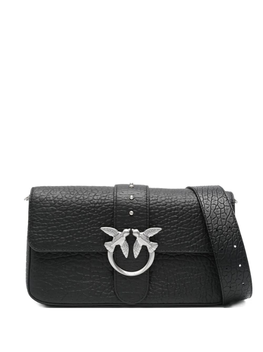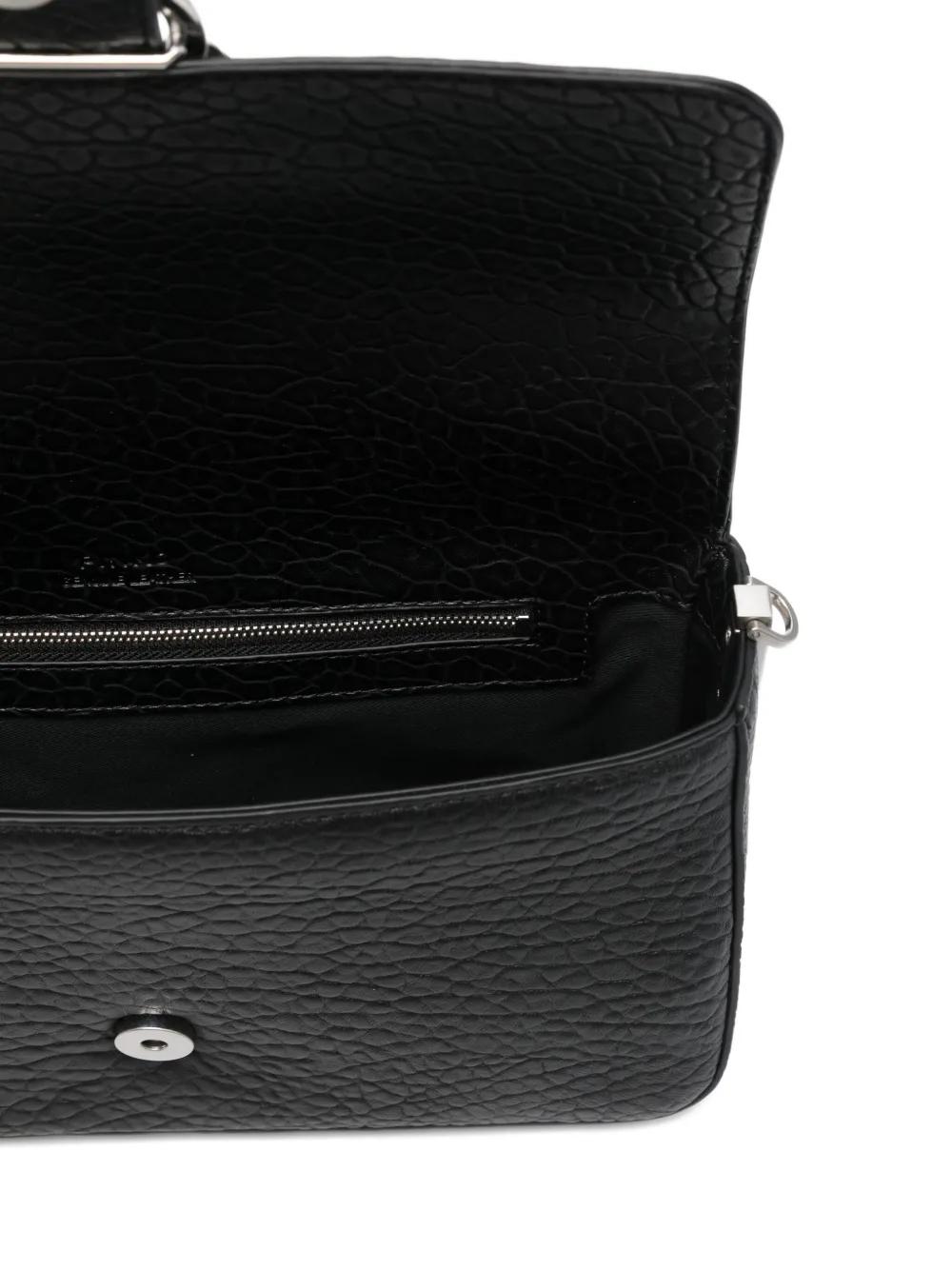 black calf leather silver-tone logo clasp adjustable shoulder strap zip pocket