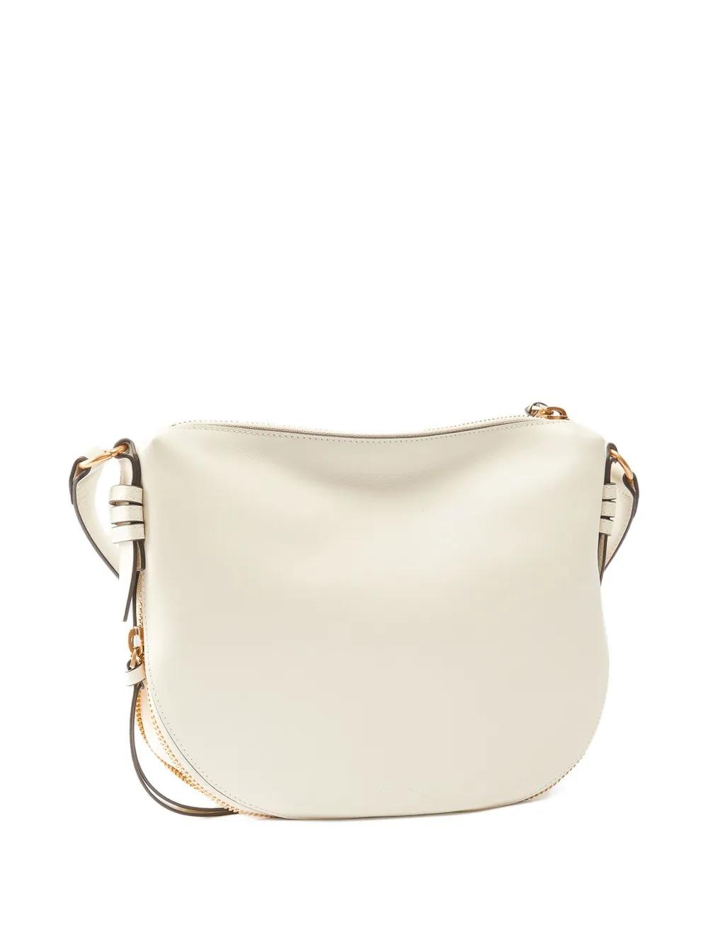 white signature Love Birds curved shape zip fastening gold-tone hardware adjustable strap leather