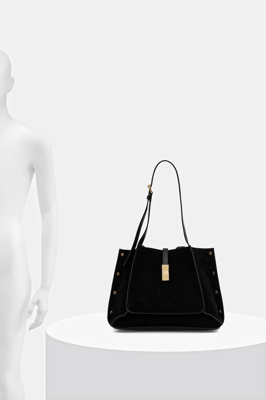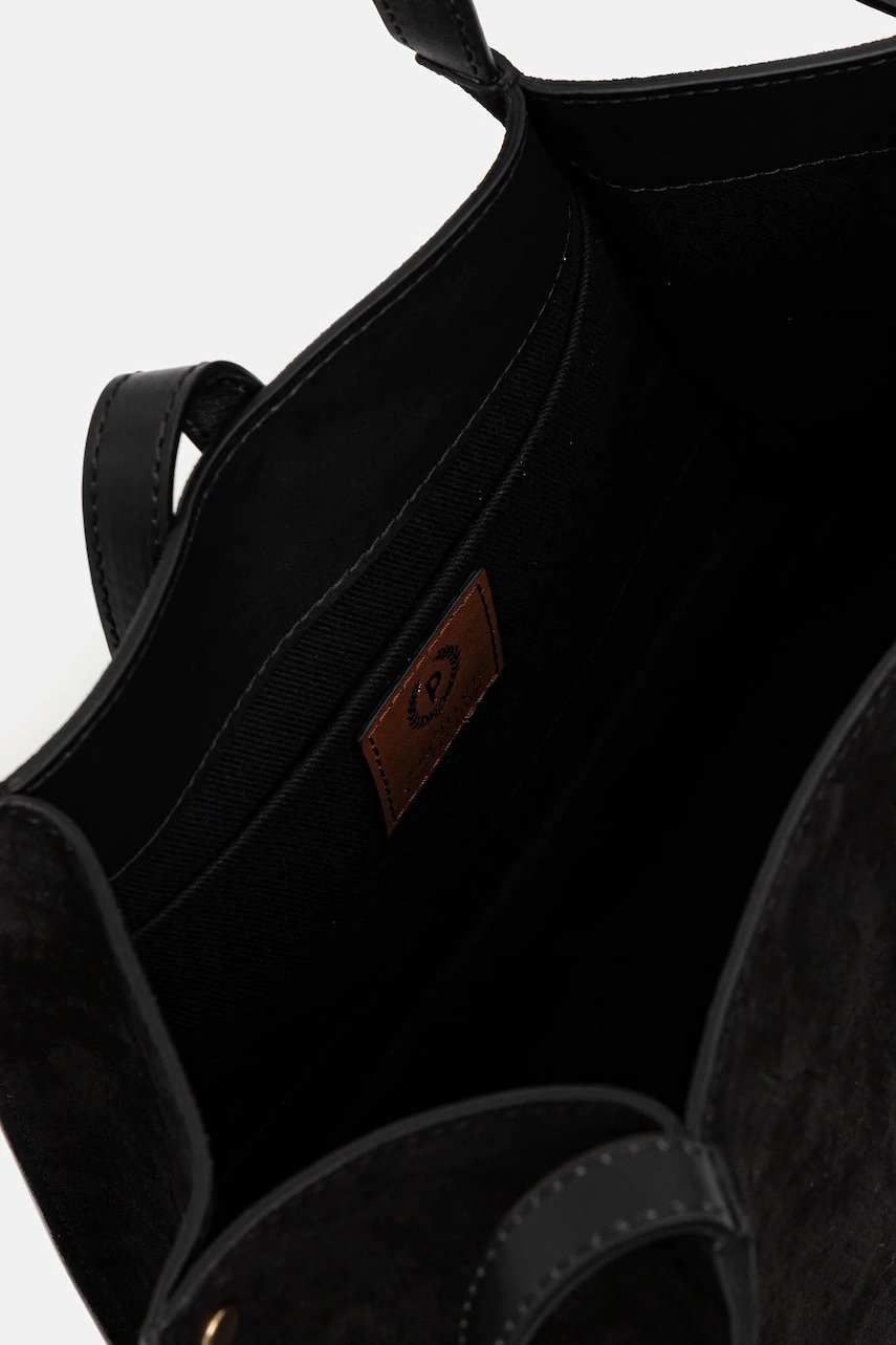 - Mieści format A4. - Zapięcie na magnes. - Wewnętrzna, wsuwana kieszeń, która ułatwia bezpieczne przechowywanie telefonu lub innych drobiazgów. - Model z podszewką. - Uchwyty z regulacją długości. - Dołączony tekstylny worek zabezpiecza produkt przed kurzem. - Maksymalna długość uchwytu: 61 cm. - Minimalna długość uchwytu: 49 cm. - Głębokość: 19 cm. - Wysokość: 24 cm. - Szerokość u podstawy: 34 cm.
