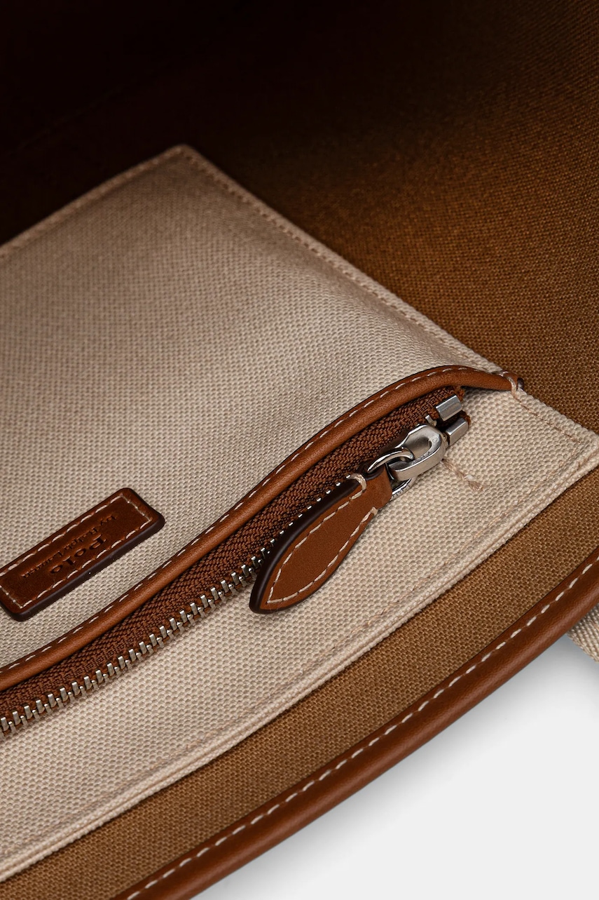 - Niezapinany model. - Model bez podszewki. - Kieszonka wewnętrzna zapinana na suwak. - Z przodu kieszonka. - Długie uchwyty dla komfortowego noszenia w dłoni lub na ramieniu. - Nie mieści formatu A4. - Długość uchwytów: 57 cm. - Głębokość: 7 cm. - Wysokość: 28 cm. - Szerokość u podstawy: 31 cm.