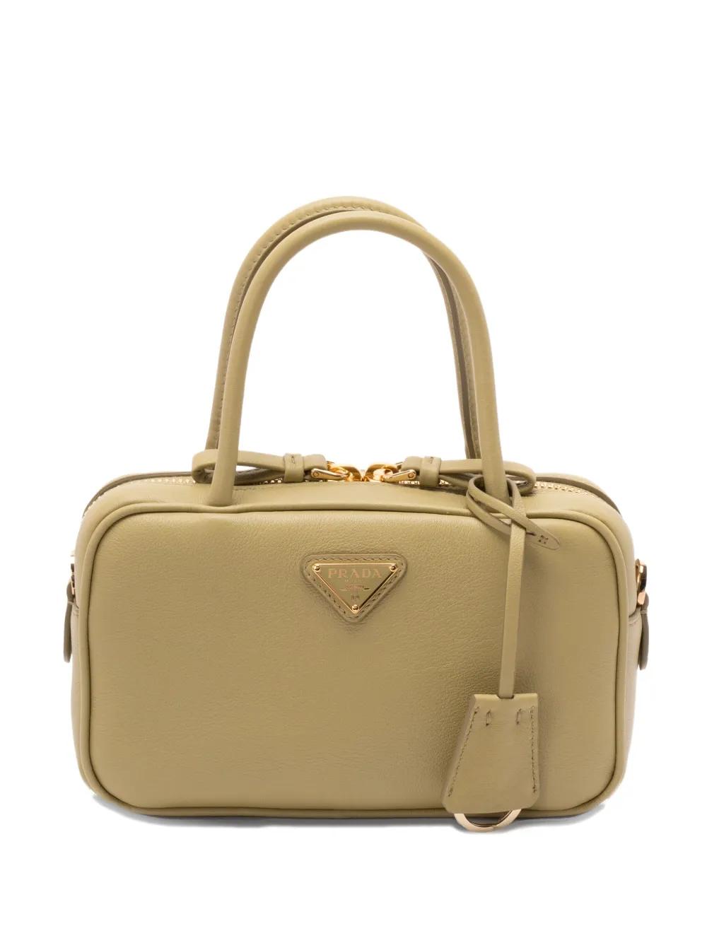 pistachio calf leather top handle detachable shoulder strap gold-tone hardware logo plaque