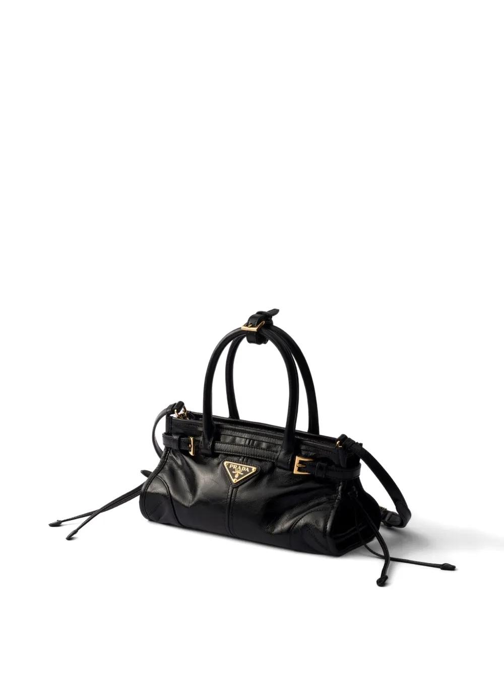 black gold-tone hardware side drawstring fastening top zip fastening buckle detail