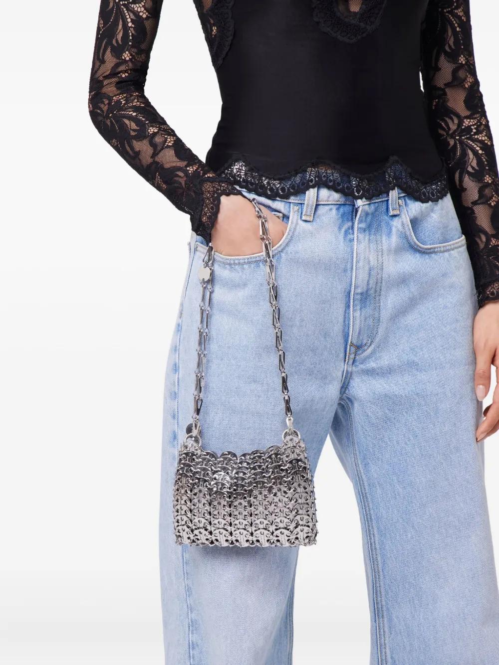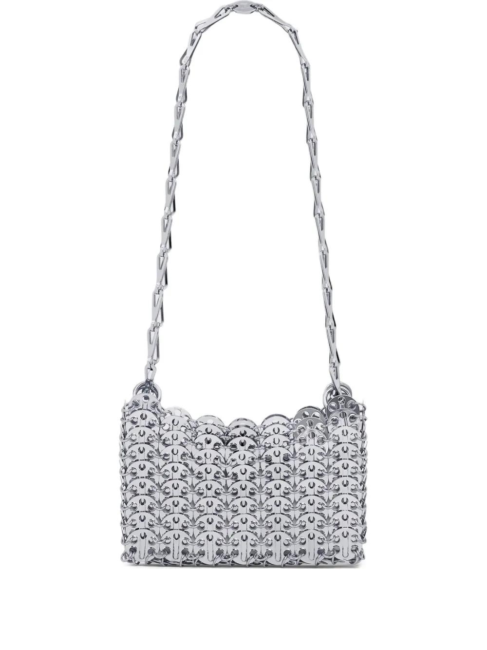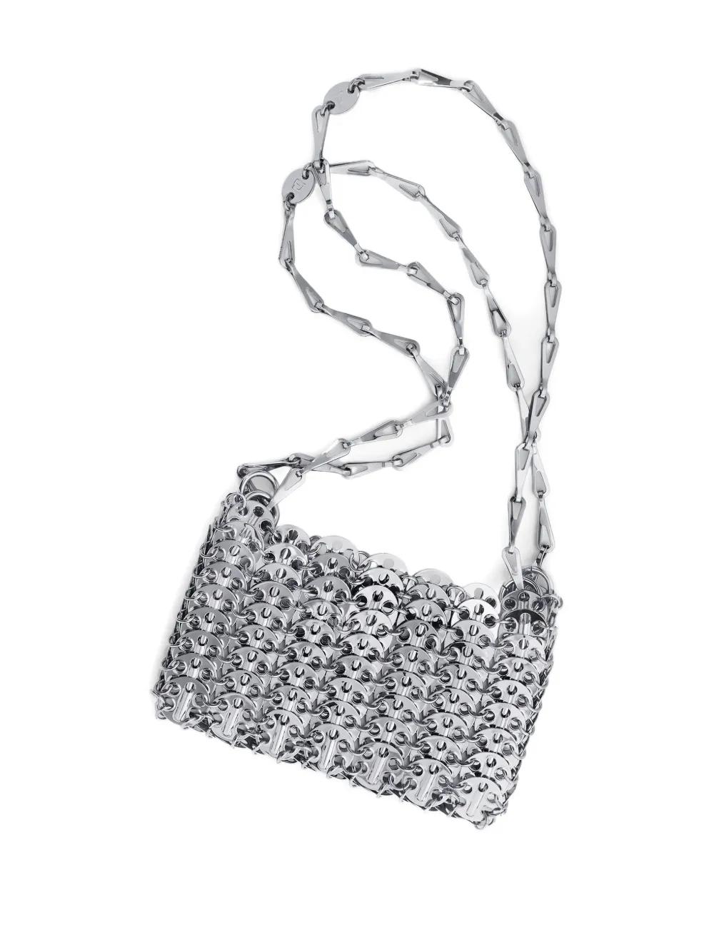 silver-tone chain embellishment chain shoulder strap open top scalloped trim