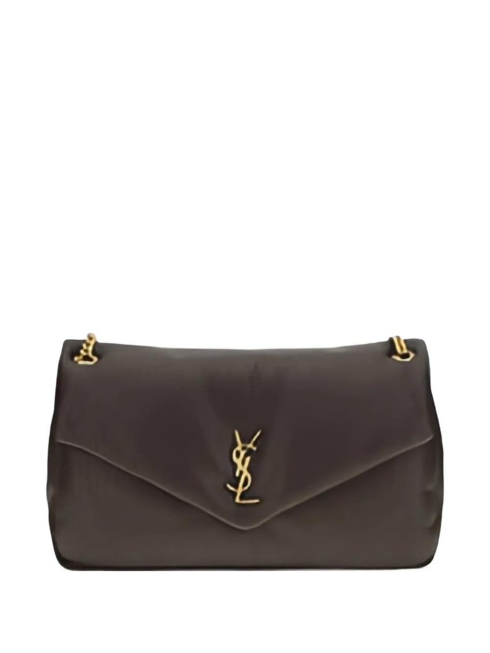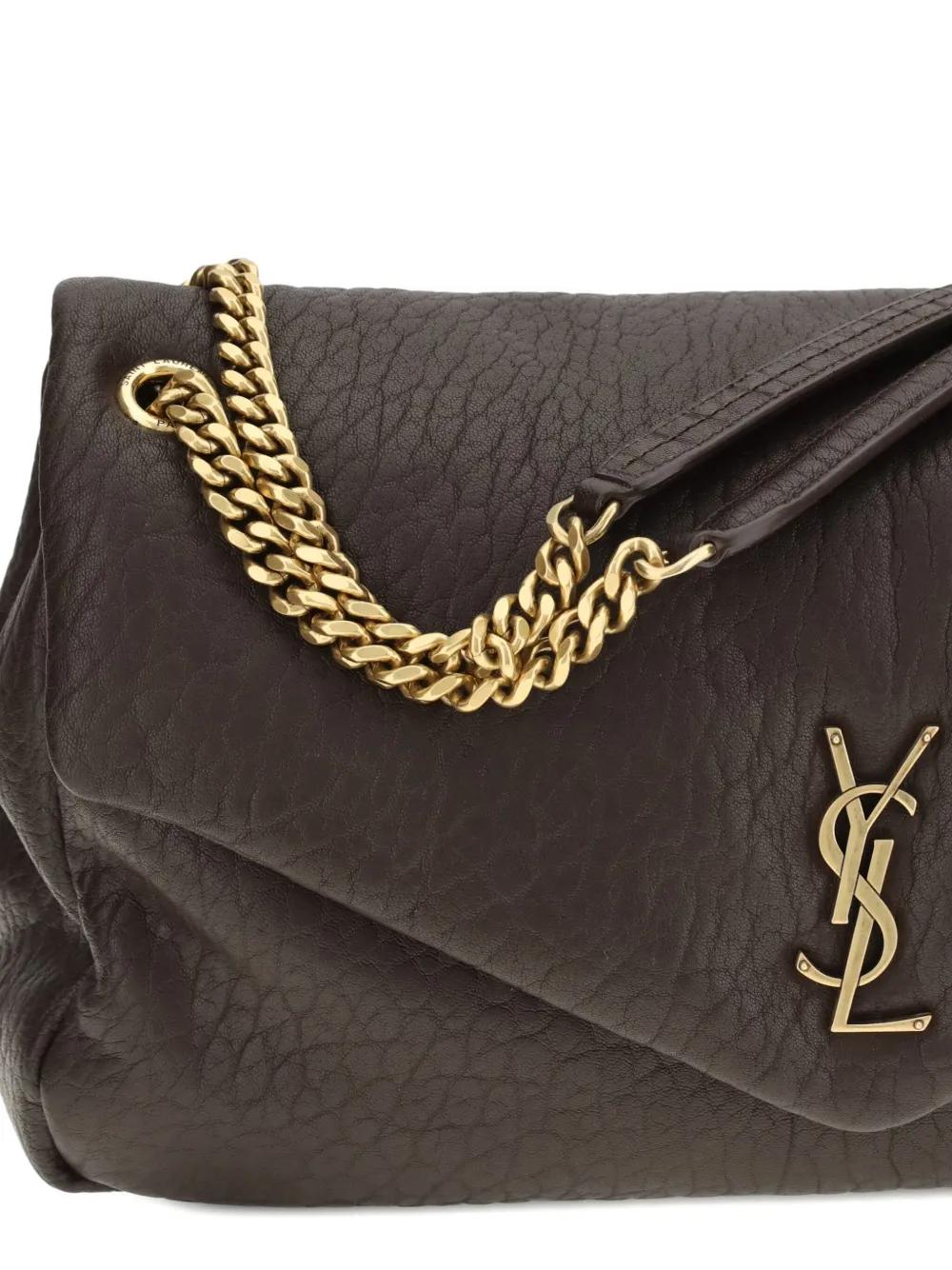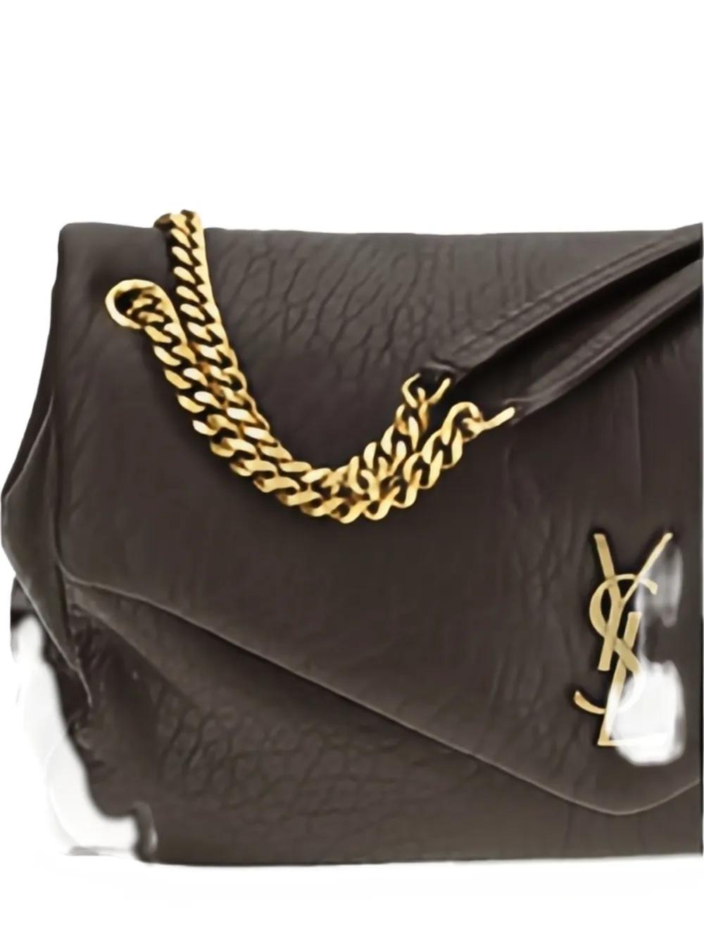 dark brown lambskin gold-tone hardware chain-link shoulder strap logo plaque