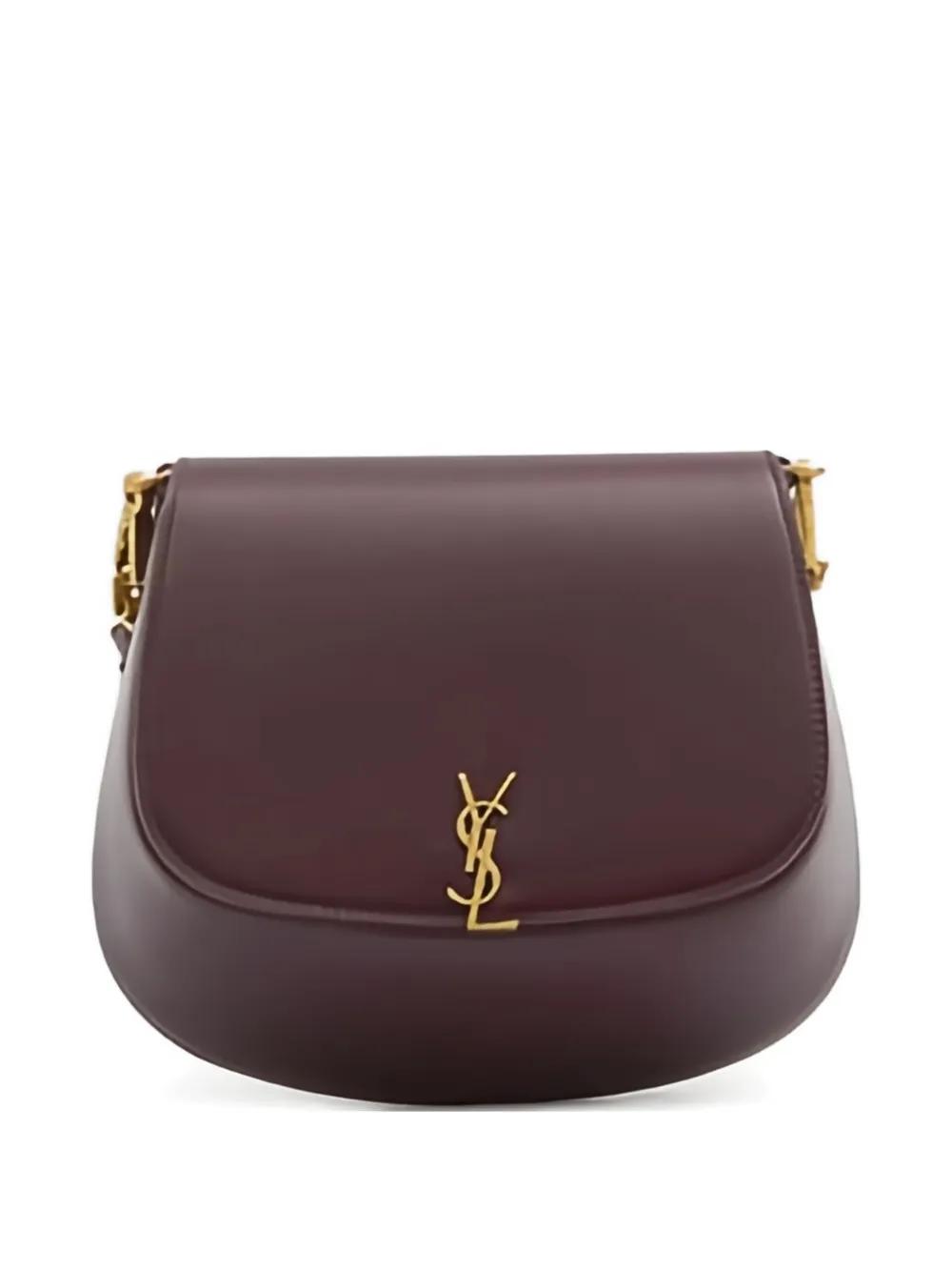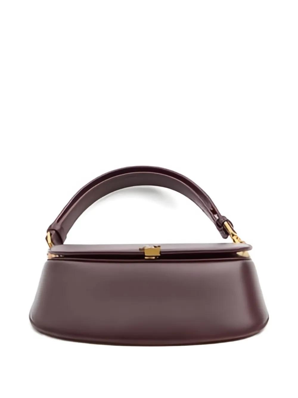 burgundy calfskin top handle gold-tone hardware magnetic fastening logo detail