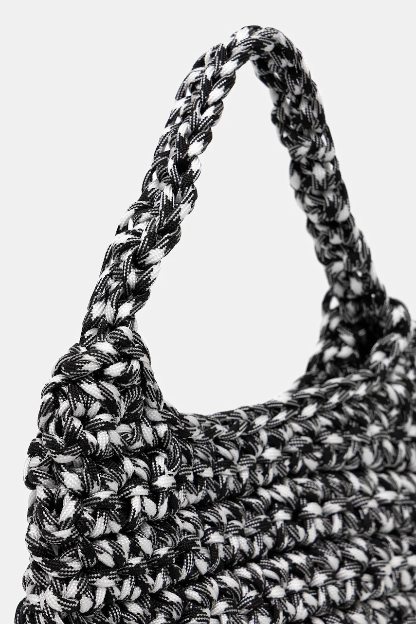 - Torebka do noszenia w ręku lub na ramieniu. - Krótki uchwyt. - Model bez podszewki. - Zapięcie na magnes. - Brak kieszeni wewnętrznych. - Nie mieści formatu A4. - Szerokość u podstawy: 19 cm. - Wysokość: 16 cm. - Głębokość: 3 cm.