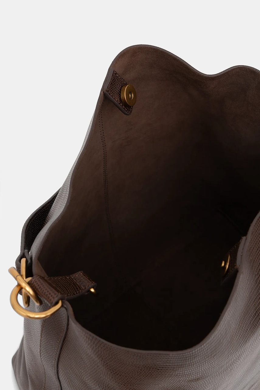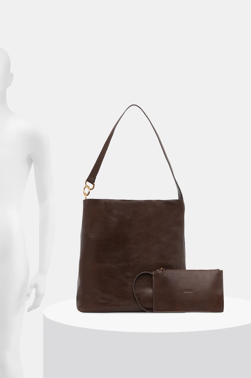 - Zapięcie na magnes. - Dołączony tekstylny worek zabezpiecza produkt przed kurzem. - Odpinana saszetka pozwoli przechować niezbędne drobiazgi. - Mieści format A4. - Model bez podszewki. - Brak kieszeni wewnętrznych. - Długi uchwyt. - Długość uchwytu: 70 cm. - Głębokość: 20 cm. - Wysokość: 36 cm. - Szerokość u podstawy: 34 cm.