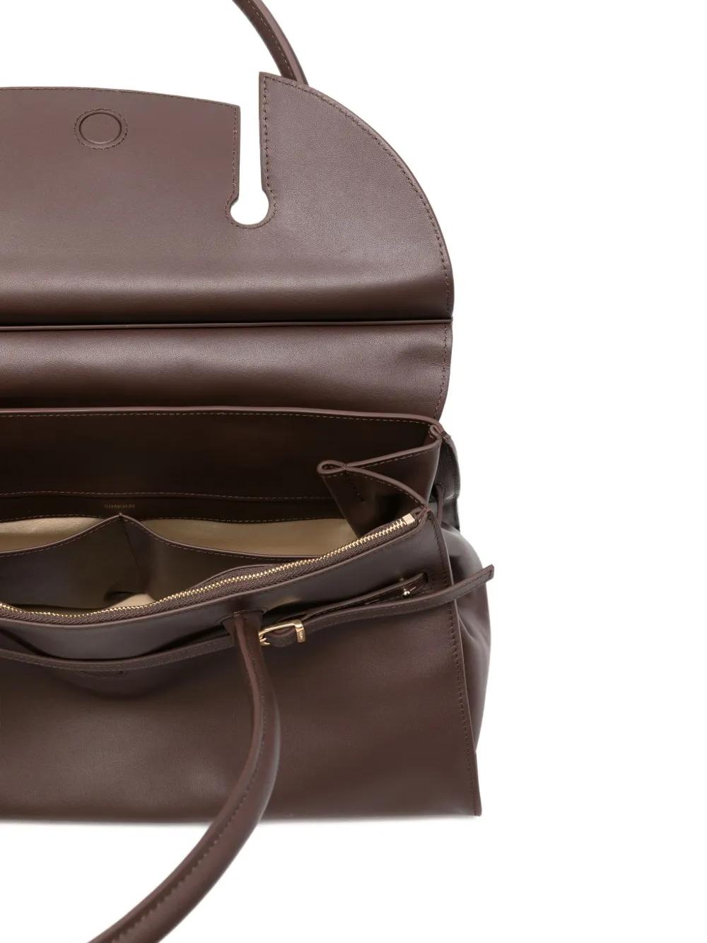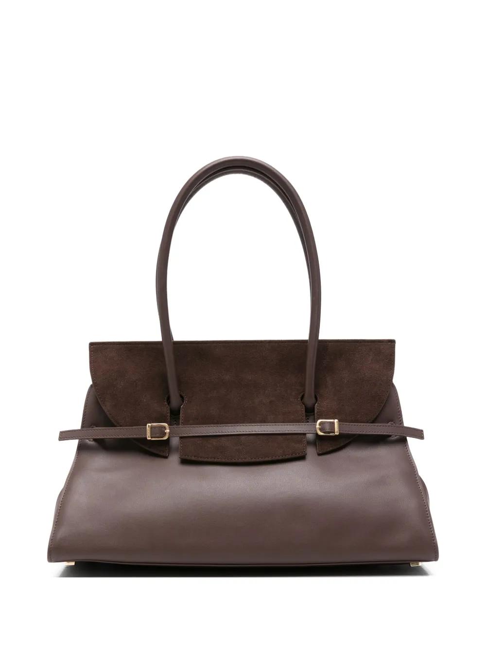 chocolate brown suede panel two shoulder straps buckle detail internal zip-fastening pocket gold-tone hardware