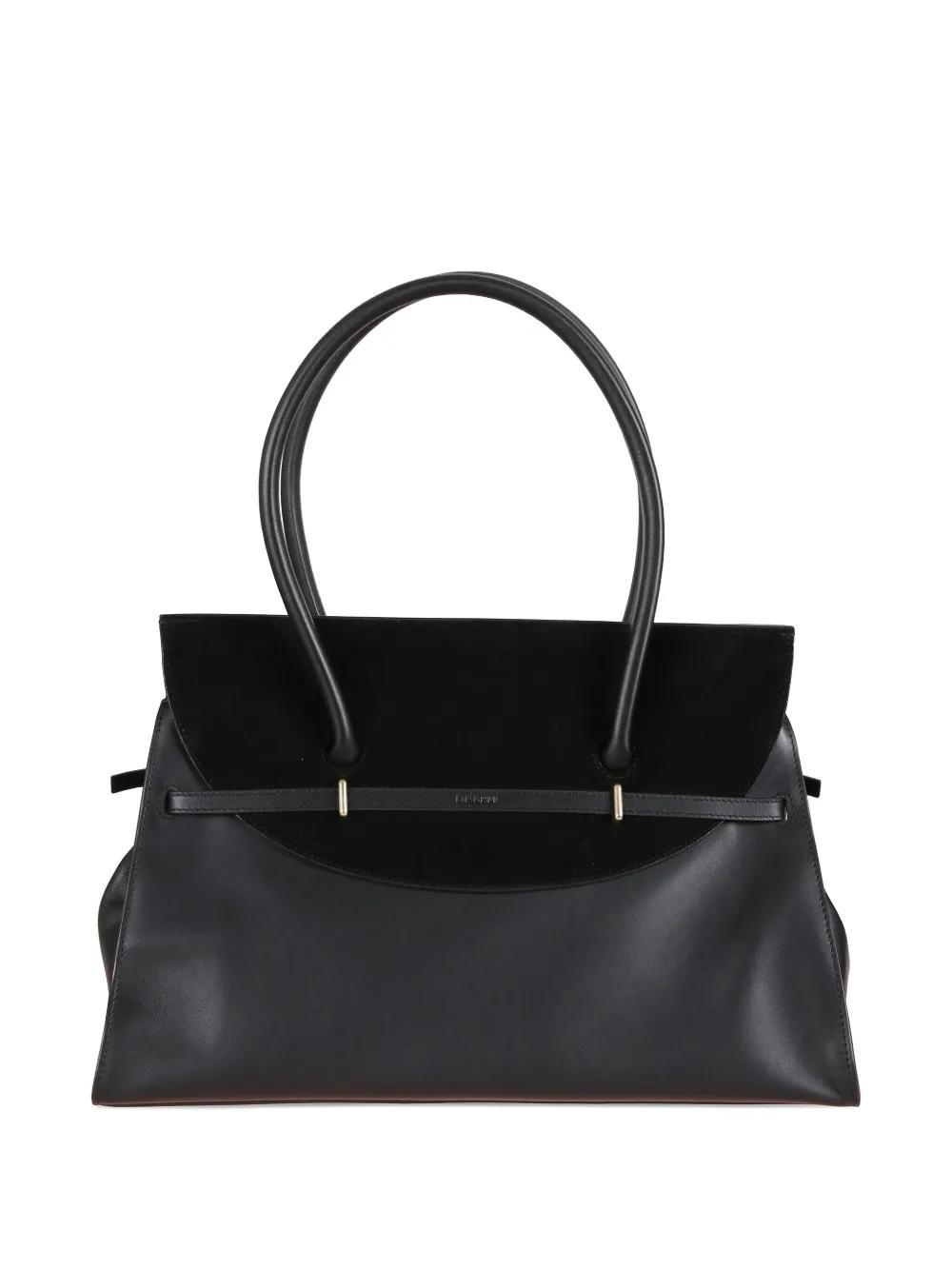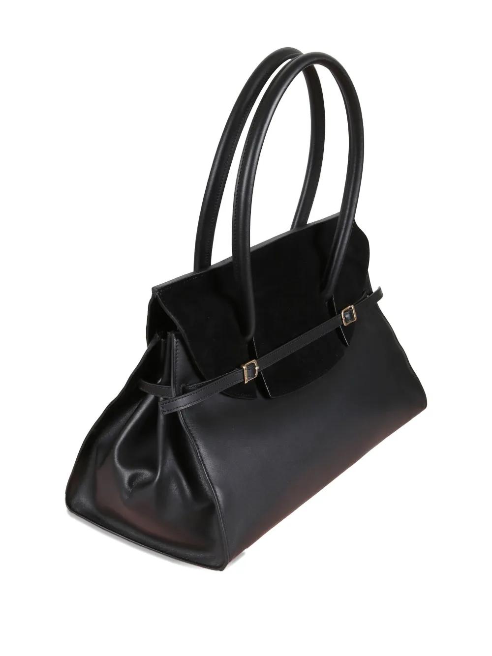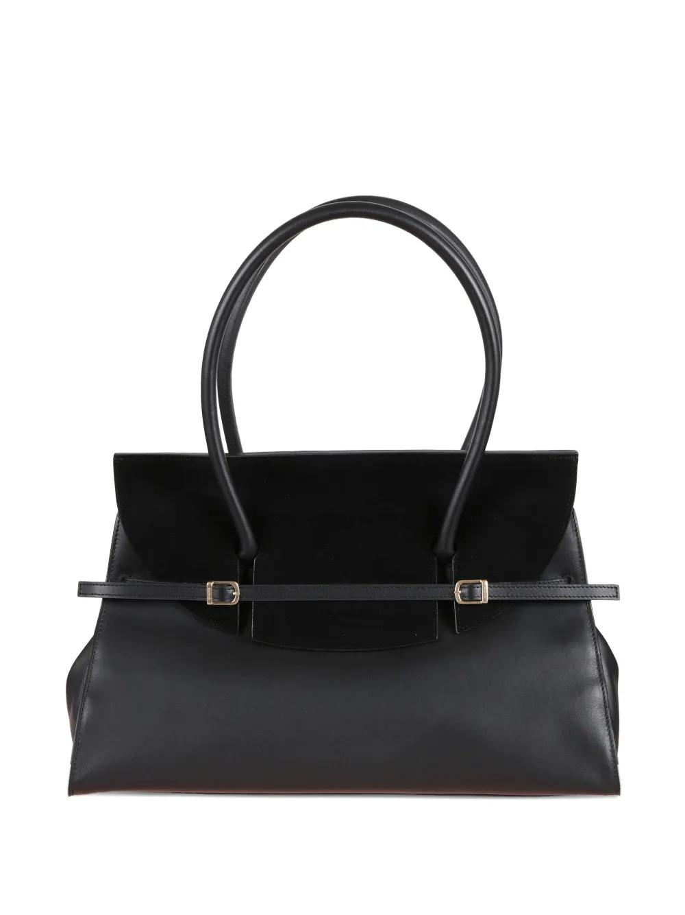 black suede panel top handle strap detail buckle detail gold-tone hardware