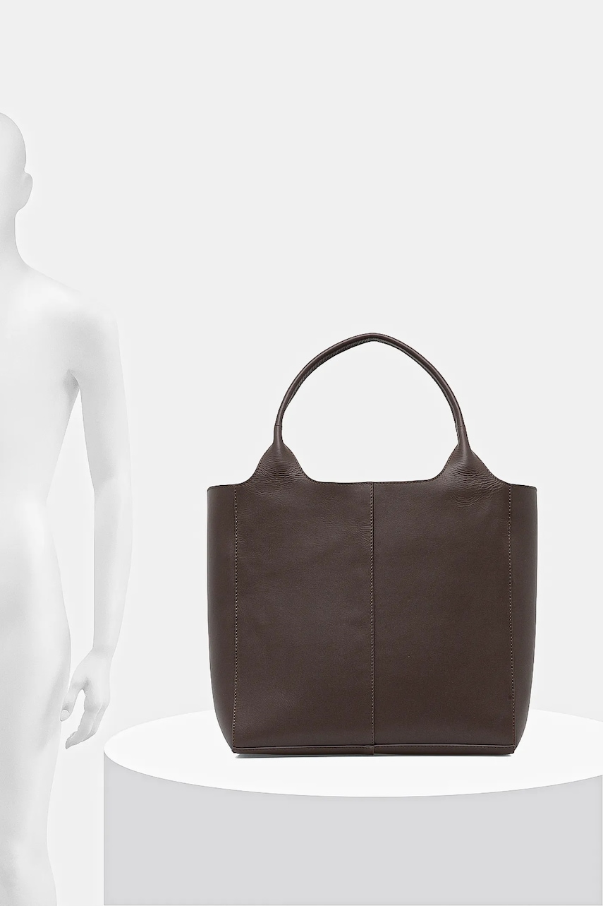 - Niezapinana komora zapewnia szybki dostęp do zawartości. - Kieszeń wewnętrzna zapinana na suwak. - Krótkie uchwyty dla komfortowego noszenia w dłoni lub na ramieniu. - Mieści format A4. - Głębokość: 18 cm. - Wysokość: 32 cm. - Szerokość u podstawy: 33 cm.