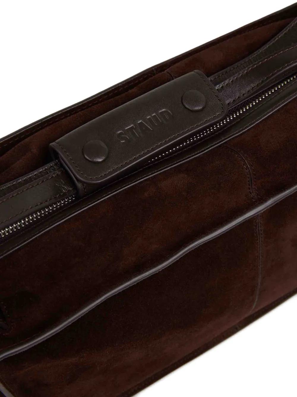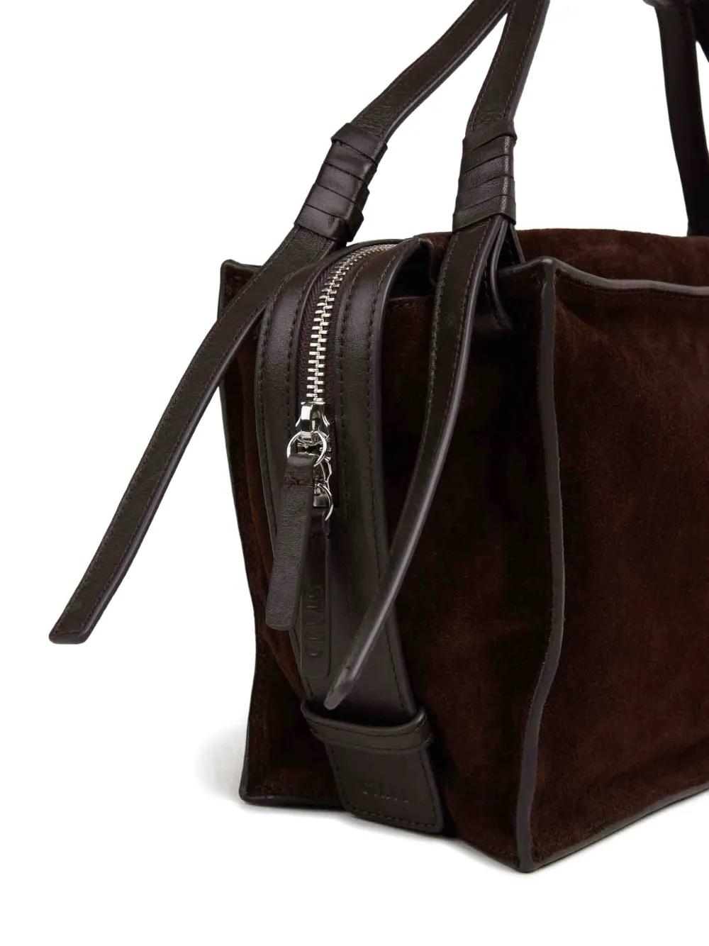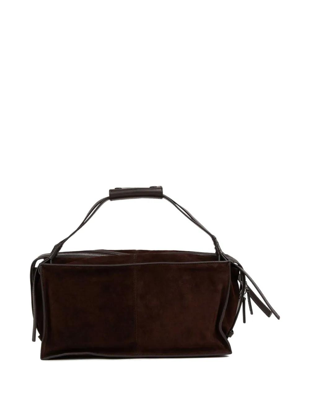 brown top handle zip fastening panelled design silver-tone hardware rectangular shape