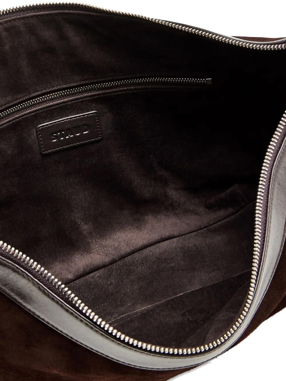 espresso brown zip fastening shoulder strap internal slip pocket silver-tone hardware suede texture