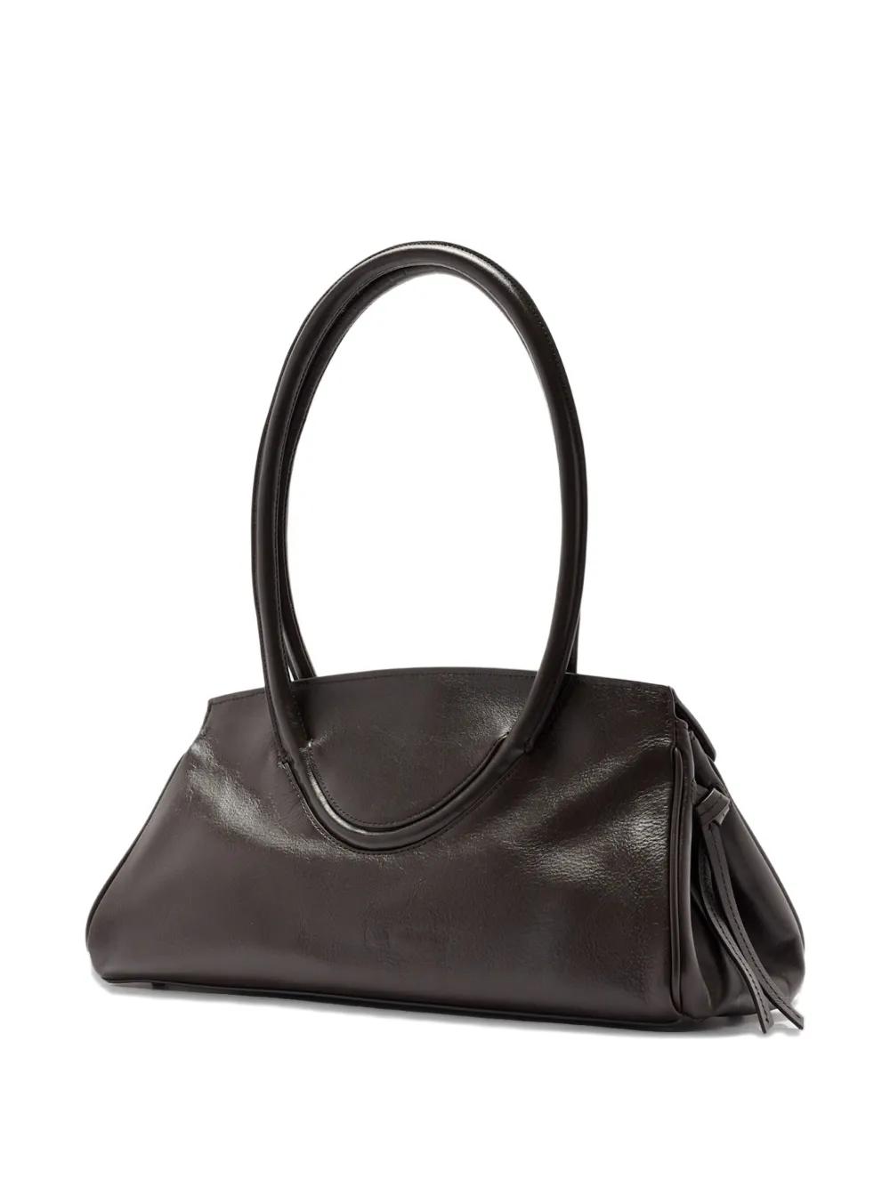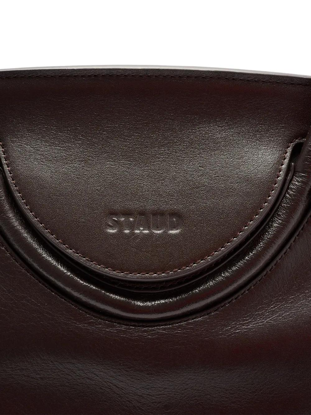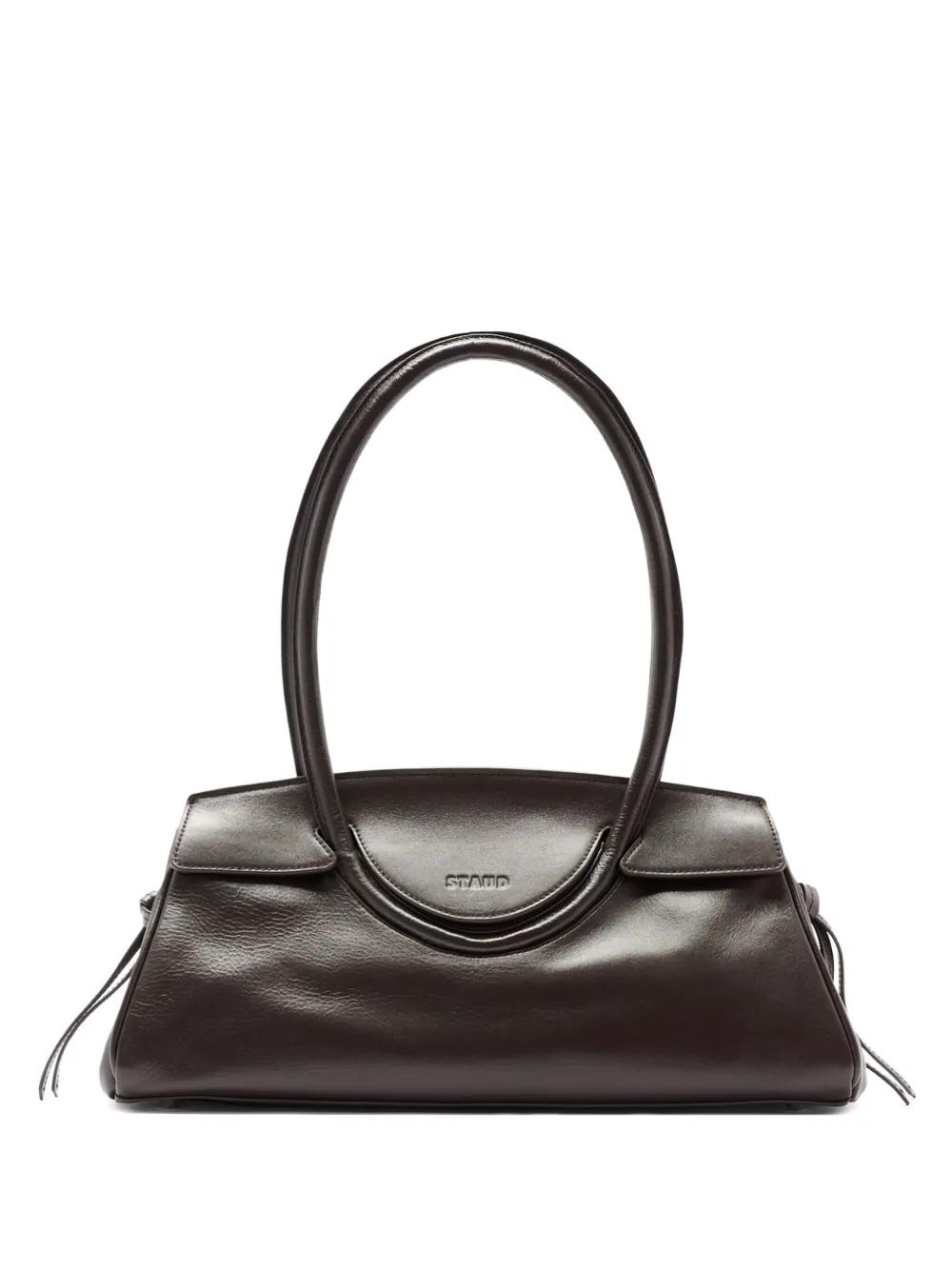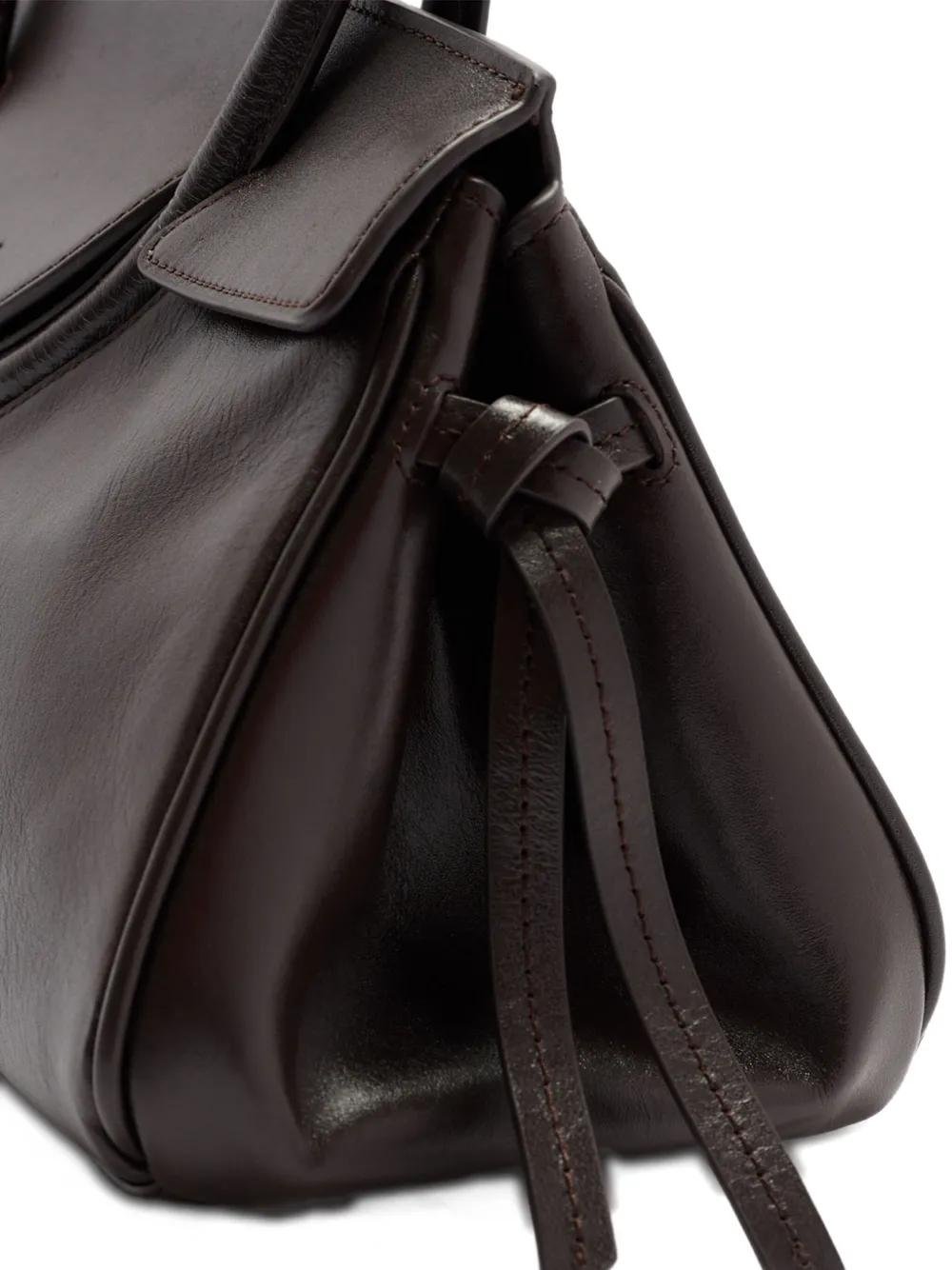 cedar brown front flap closure two top handles debossed logo to the front main compartment