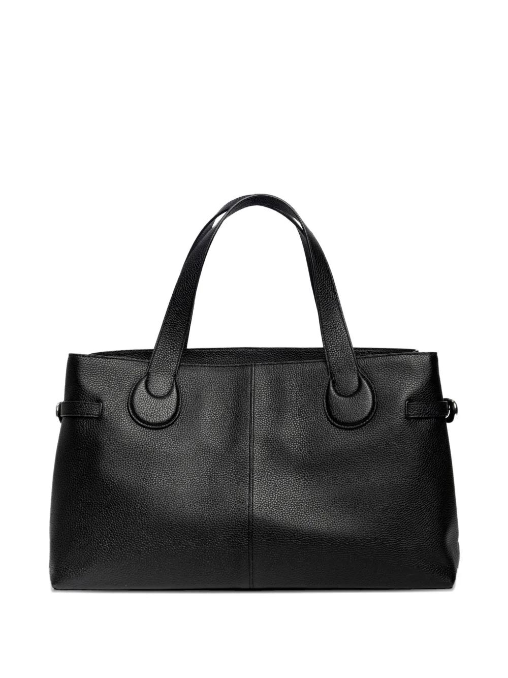 black calf leather two top handles top zip fastening logo print to the front logo tag adjustable detachable shoulder strap silver-tone hardware main compartment rectangle shape