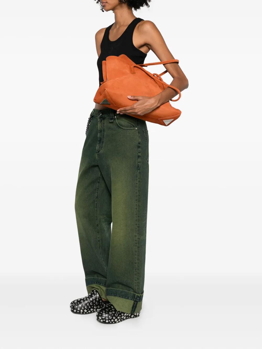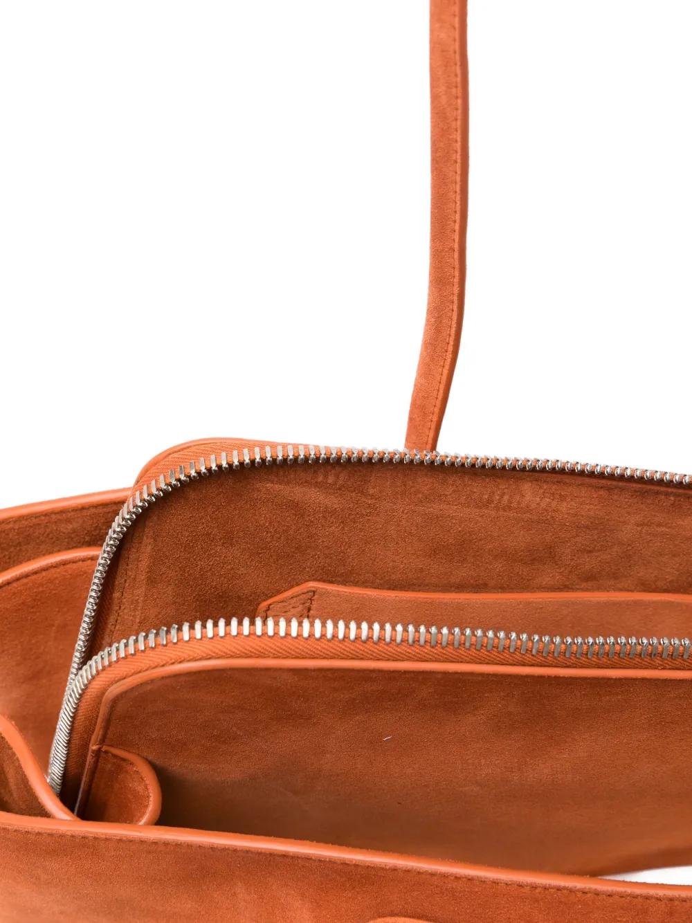 orange suede top handles two-way zip fastening silver-tone hardware internal slip pocket