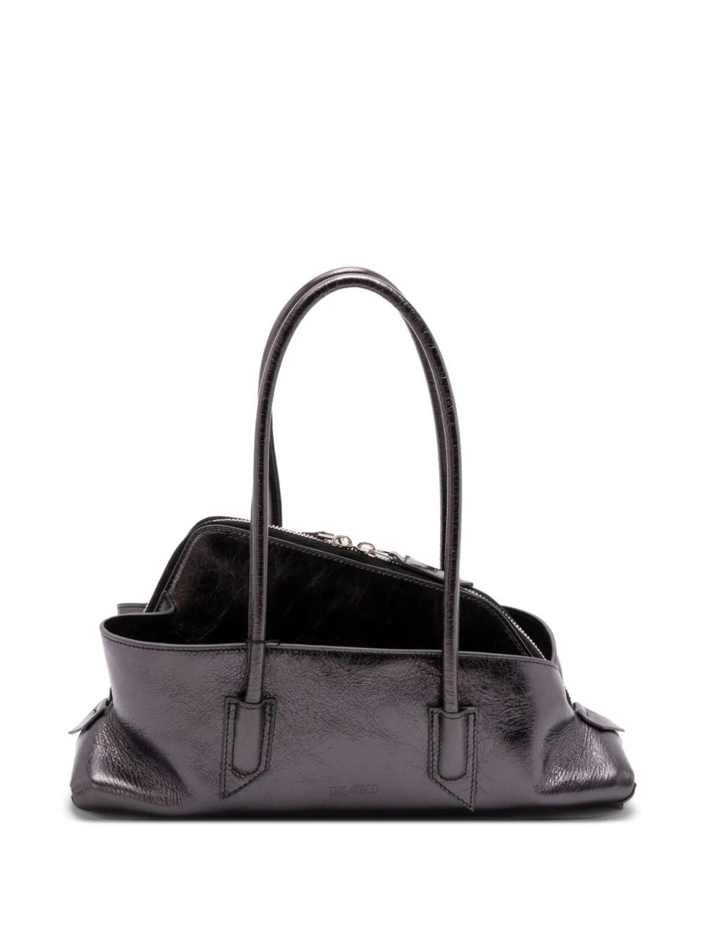 dark grey calf leather top zip fastening double top handles curved top line structured shape