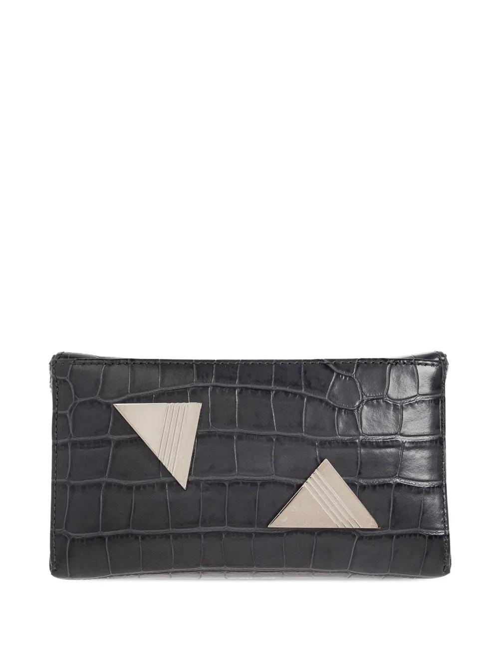black foldover top with magnetic fastening single shoulder strap This piece comes complete with a protective dust bag.