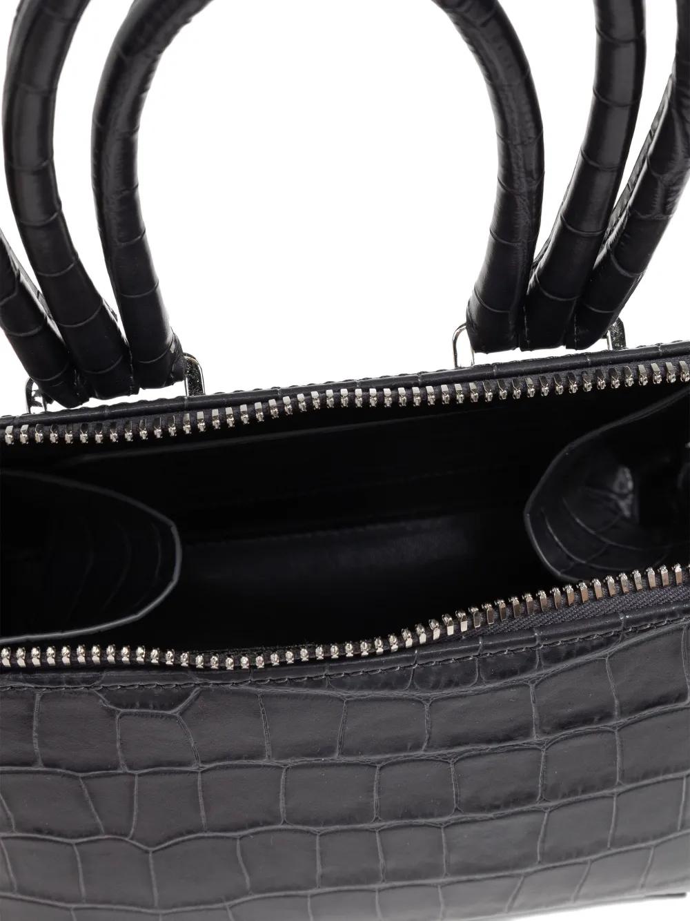 - Komora zapinana na suwak. - Zapinana na zatrzask kieszonka wewnętrzna, która ułatwia bezpieczne przechowywanie telefonu lub innych drobiazgów. - Model bez podszewki. - Nie mieści formatu A4. - Długi uchwyt dla komfortowego noszenia w dłoni lub na ramieniu. - Dołączony tekstylny worek zabezpiecza produkt przed kurzem. - Głębokość: 11 cm. - Wysokość: 19,5 cm. - Szerokość u podstawy: 30 cm. - Długość uchwytu: 62 cm.