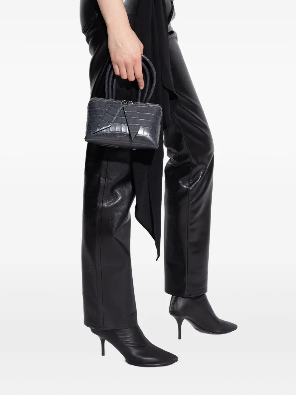 brown suede texture top handle clasp fastening curved panelling shoulder strap