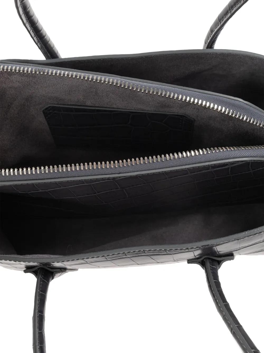 grey croc-embossed top handle zip fastening internal slip pocket silver-tone hardware