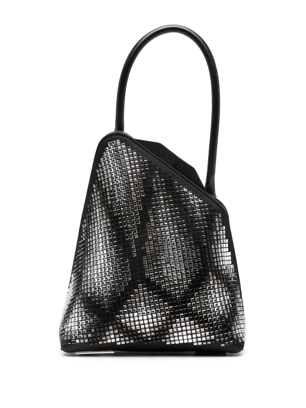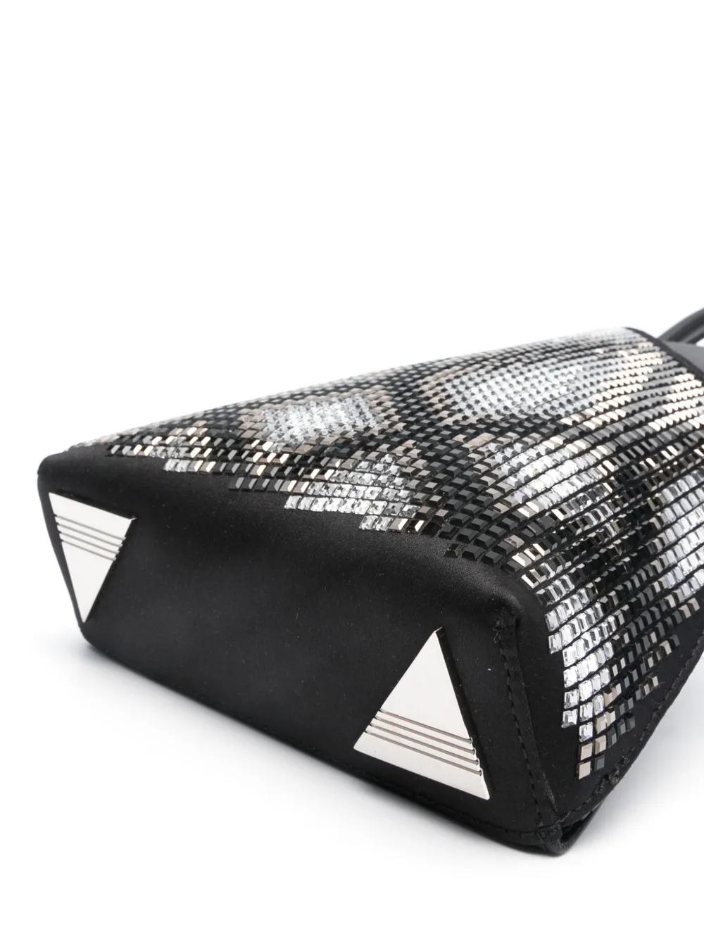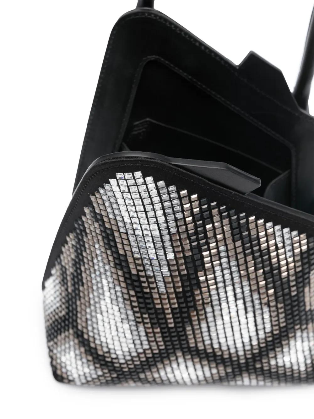 black calf leather asymmetric body satin finish tonal stitching panelled design ombré-effect crystal-embellished panel single rolled top handle main compartment internal patch pocket internal logo stamp faux-leather lining metal feet concealed magnetic fastening This piece comes complete with a protective dust bag.