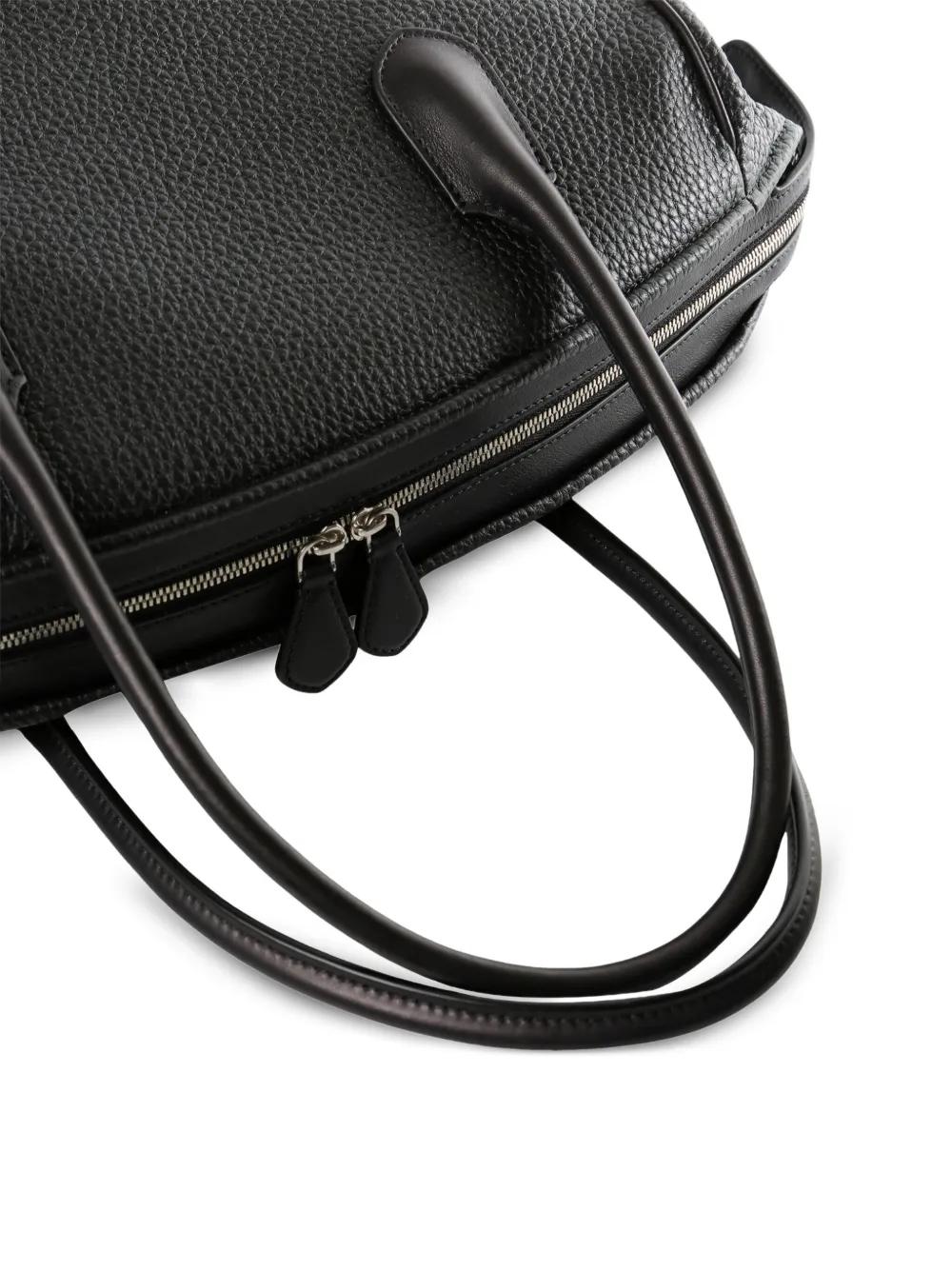 black two top handles zip fastening leather