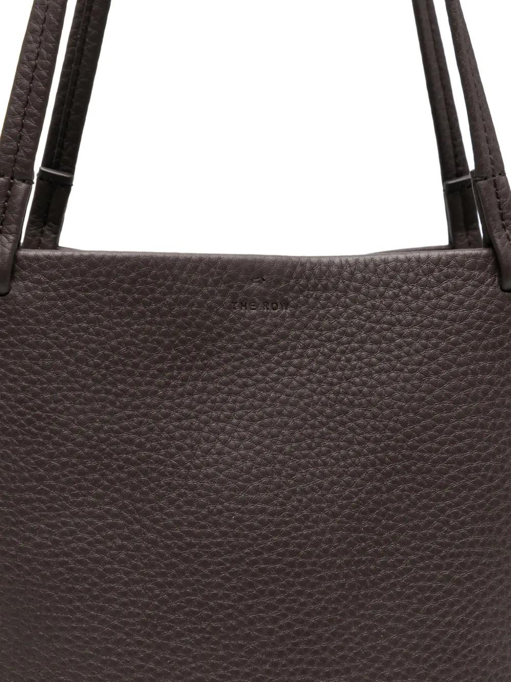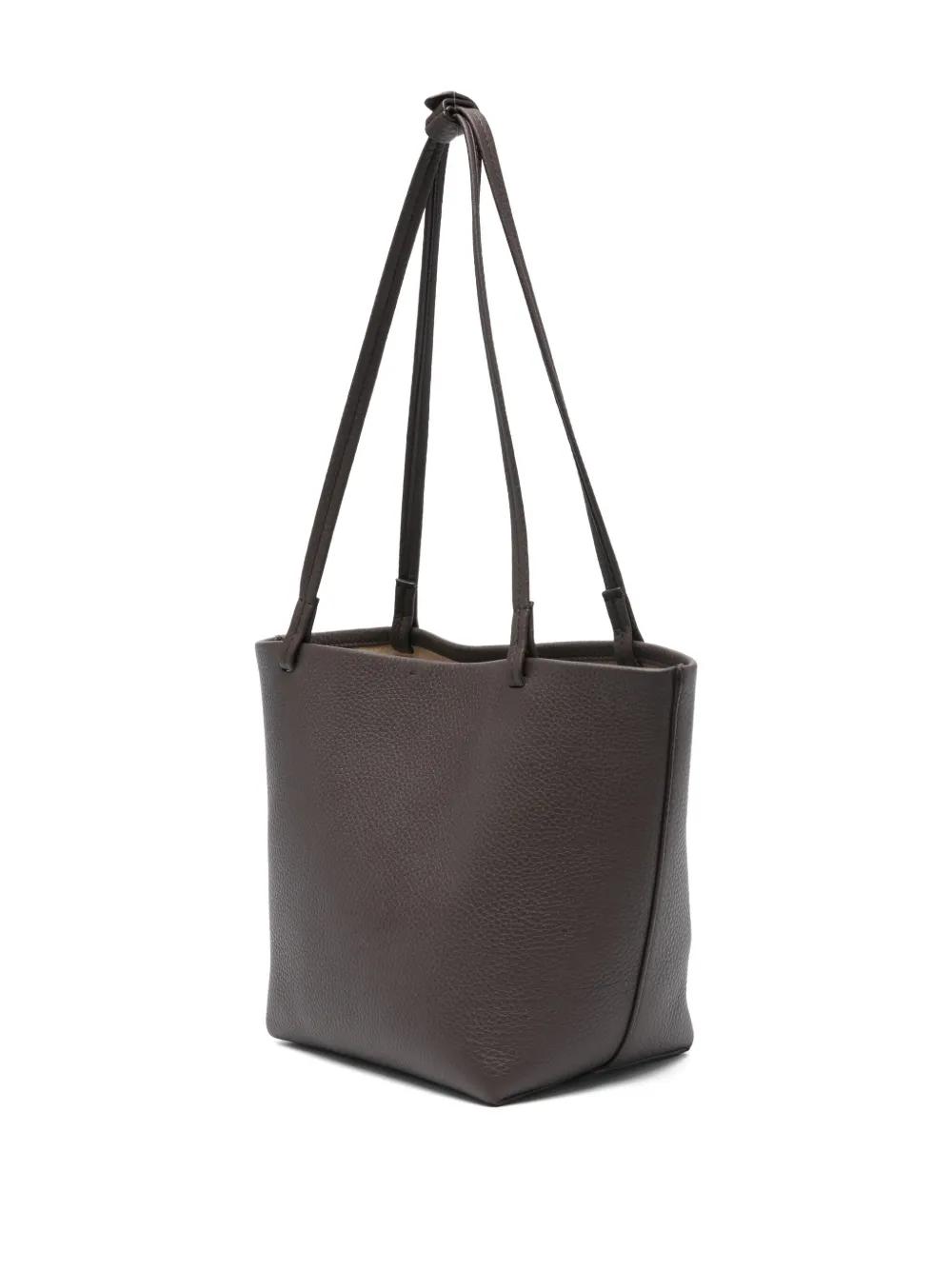 brown grained calf leather contrast stitching double fixed handle inner drawstring-fastening removable clutch rigid base feet