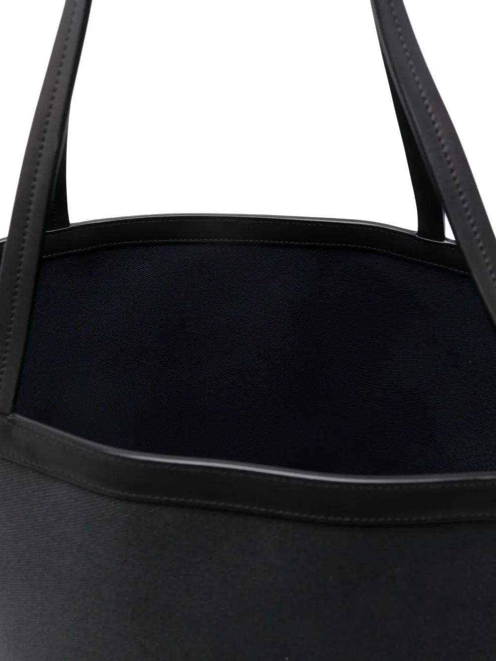 black calf leather two top handles top zip fastening logo print to the front logo tag adjustable detachable shoulder strap silver-tone hardware main compartment rectangle shape