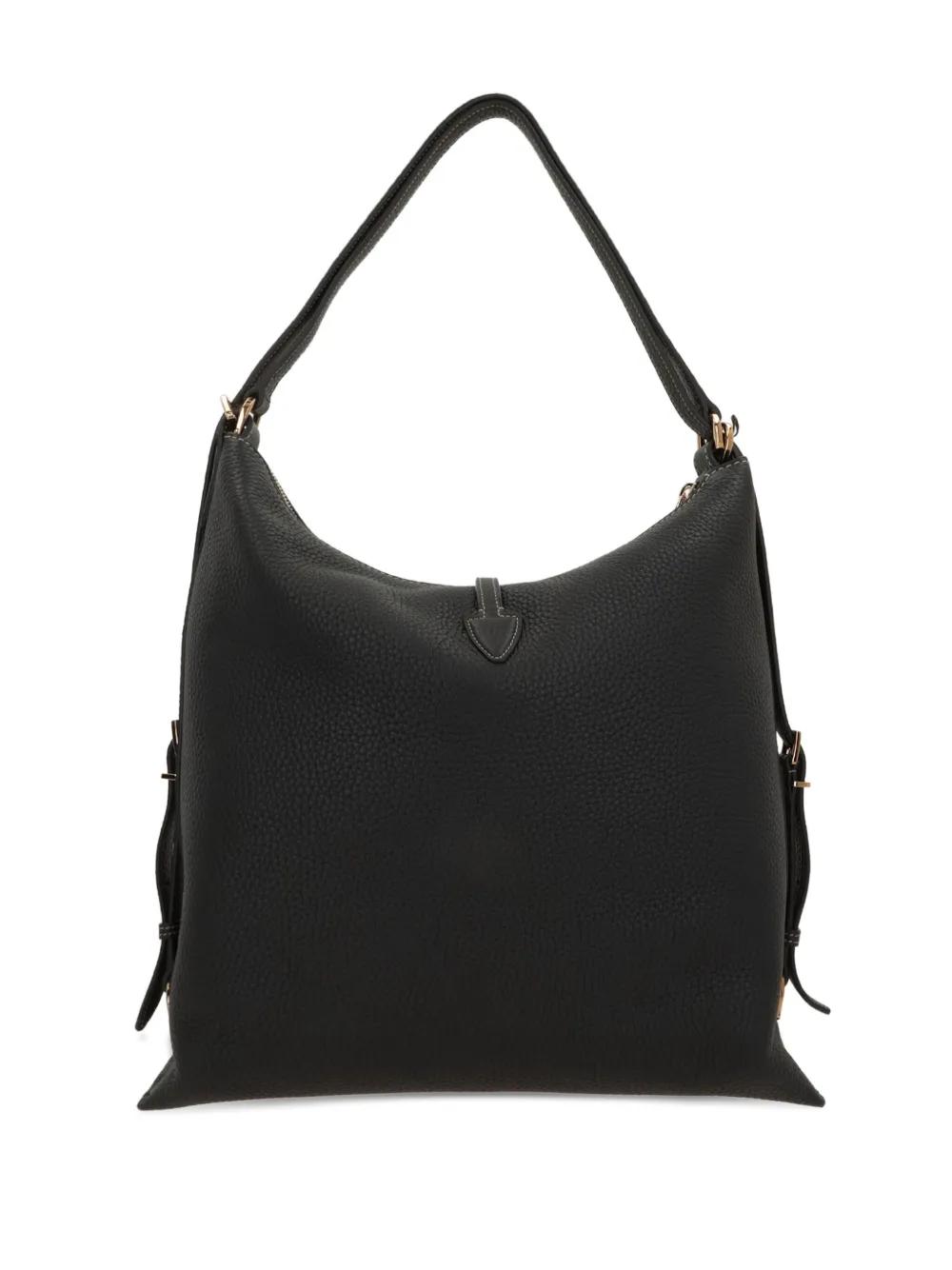 black bullskin logo plaque top zip fastening shoulder strap side buckle detail