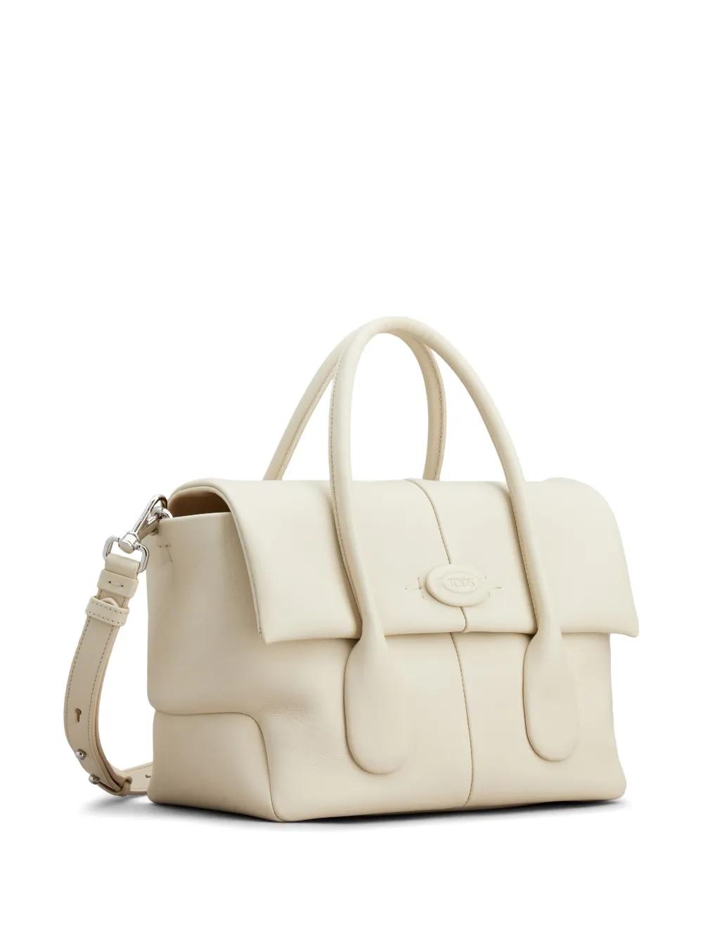 white calf leather appliqué logo two rolled top handles detachable shoulder strap foldover top internal zip-fastening pocket main compartment metal feet
