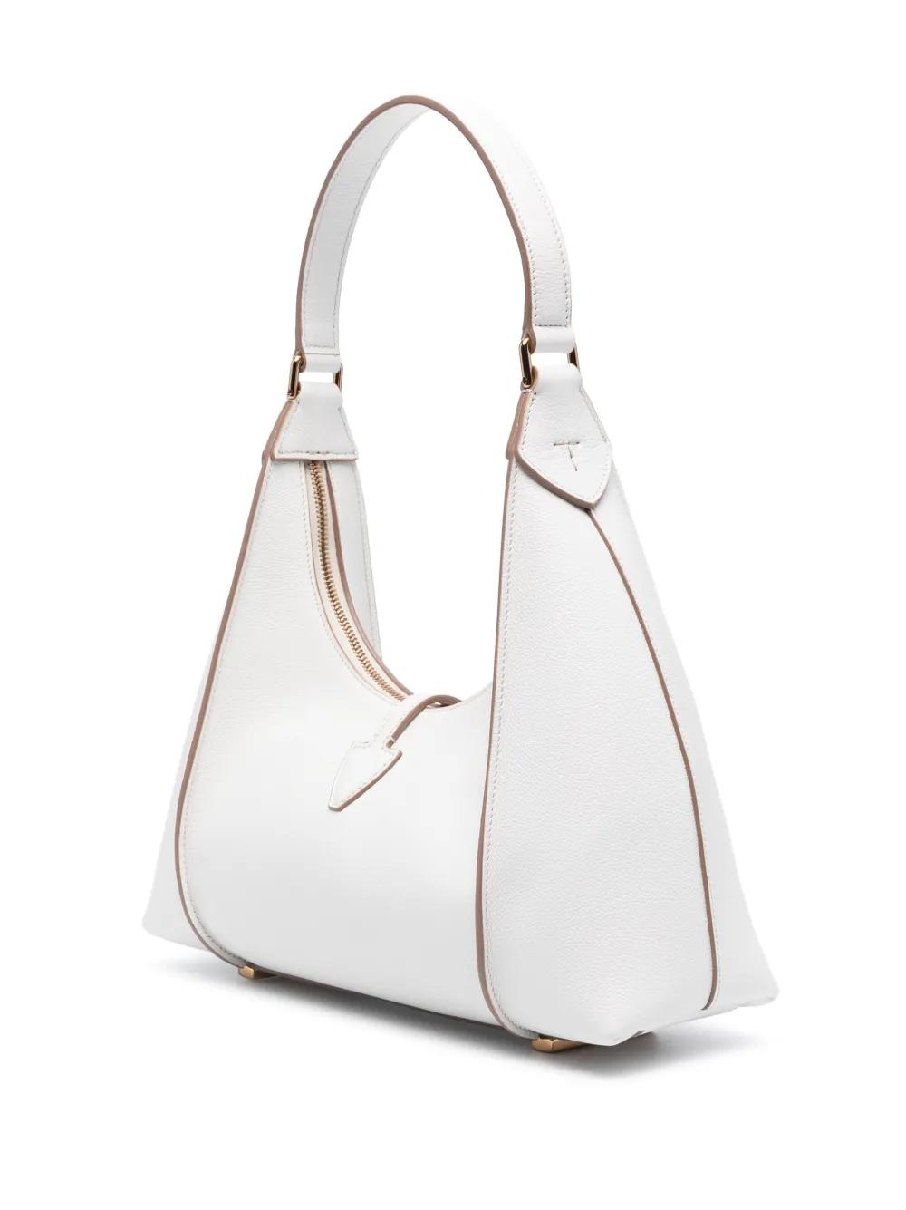 white calf leather pebbled texture gold-tone hardware single shoulder strap foldover strap with gold tone logo-plaque main compartment full lining internal logo patch metal feet top zip fastening