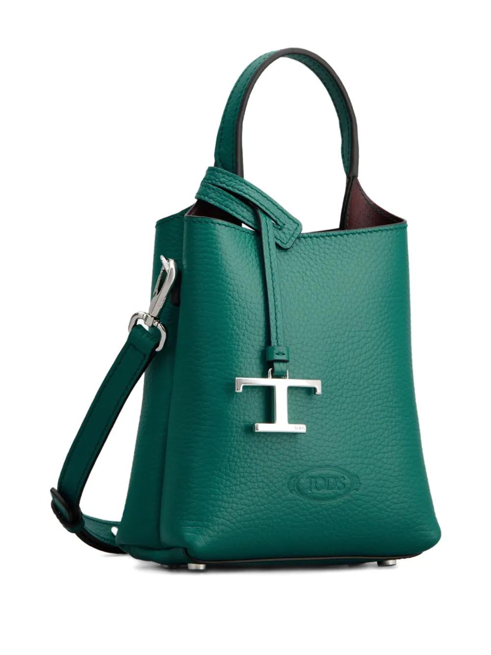 green pebble-grain leather top handle adjustable detachable shoulder strap T-logo charm silver-tone metal details