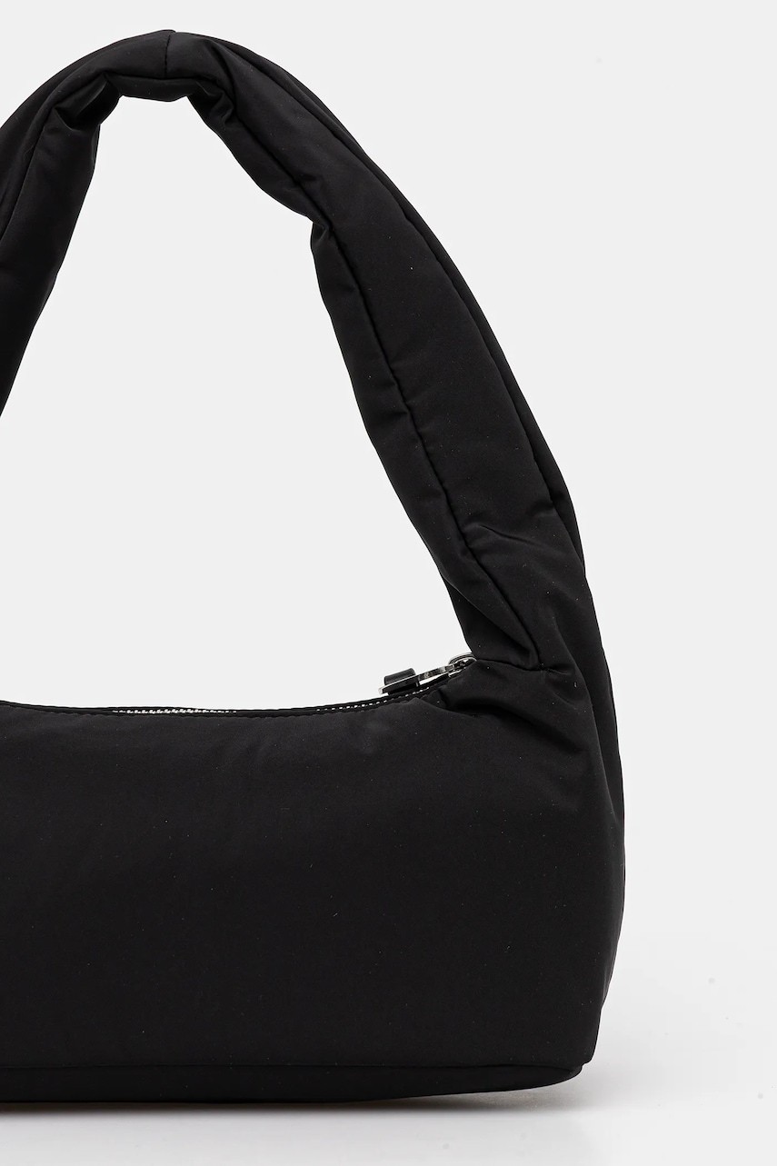 - Ten produkt został częściowo uszyty z poliestru pochodzącego z recyklingu. - Nie mieści formatu A4. - Komora zapinana na suwak. - Kieszonka wewnętrzna zapinana na suwak. - Model z podszewką. - Krótki uchwyt dla komfortowego noszenia w dłoni lub na ramieniu. - Głębokość: 11,5 cm. - Wysokość: 12,5 cm. - Szerokość u podstawy: 27 cm. - Długość uchwytu: 48 cm.