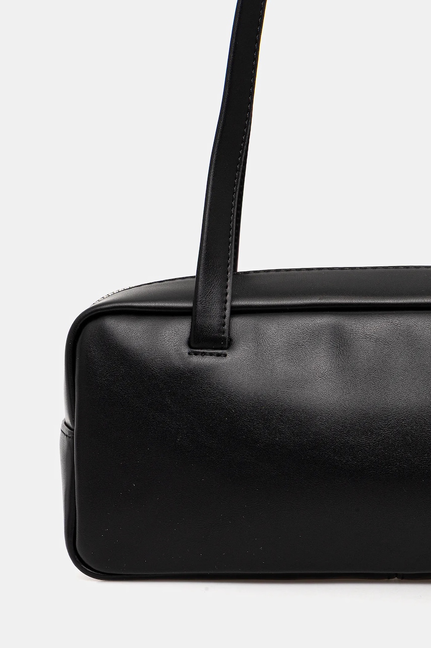 - Nie mieści formatu A4. - Zapięcie na suwak. - Kieszonka wewnętrzna zapinana na suwak. - Model z podszewką. - Uchwyty dla komfortowego noszenia w dłoni lub na ramieniu. - Dołączony tekstylny worek zabezpiecza produkt przed kurzem. - Długość uchwytów: 67 cm. - Głębokość: 9 cm. - Wysokość: 12 cm. - Szerokość u podstawy: 29 cm.