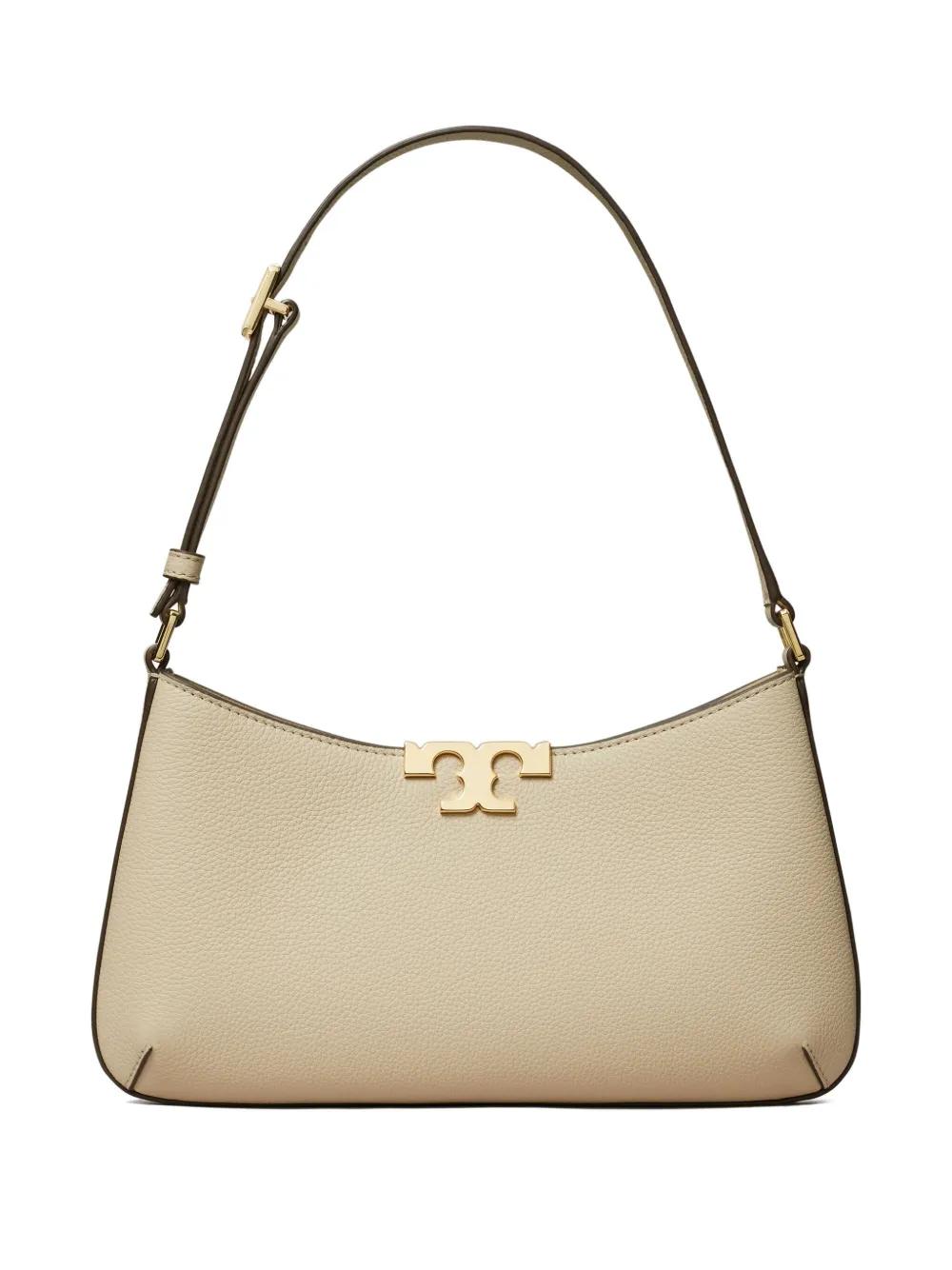 light beige leather gold-tone hardware logo detail adjustable shoulder strap