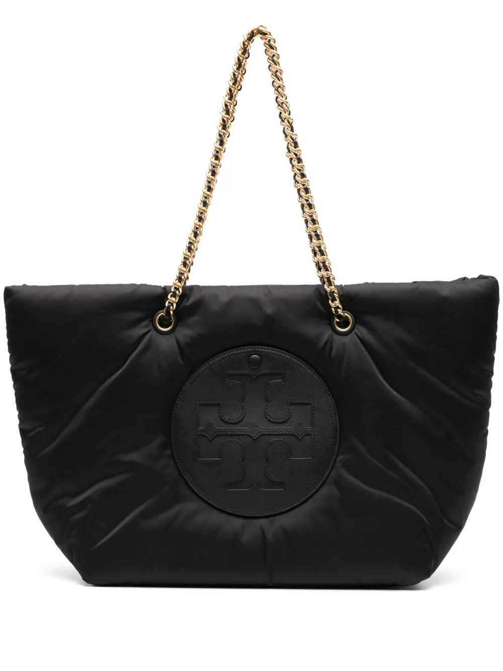 black padded design signature Double T motif silver-tone hardware concealed magnetic fastening two chain-link top handles main compartment internal logo plaque internal zip-fastening pocket