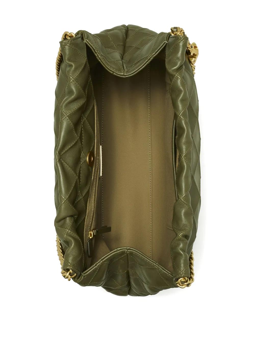 dark olive green quilted design chain shoulder straps logo charm This piece comes complete with a protective dust bag.