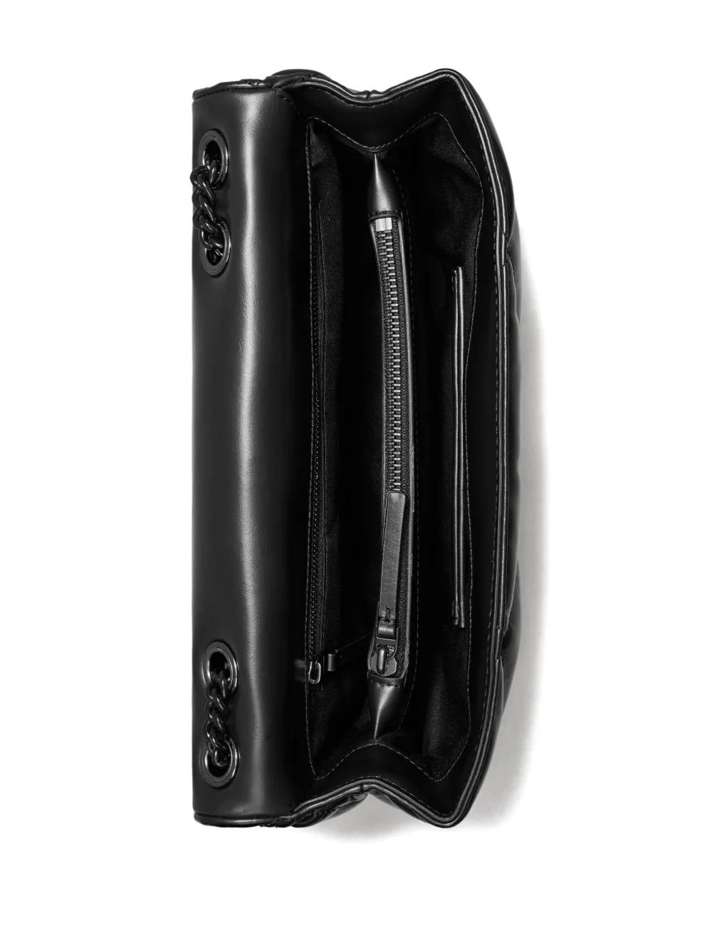 black diamond quilted pattern logo embellishment chain shoulder strap flap closure