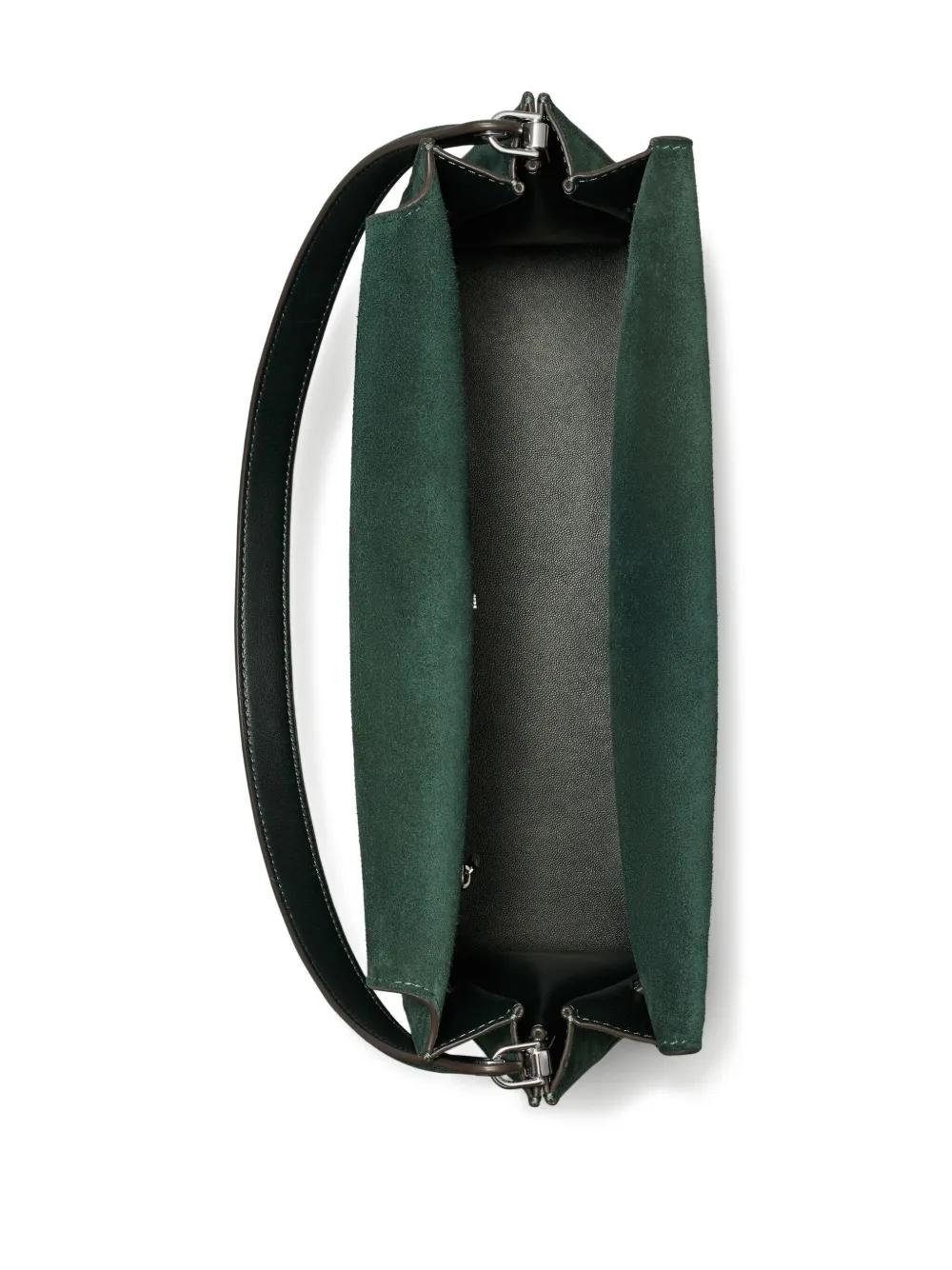 teal green suede leather clasp closure central strap detail silver-tone hardware