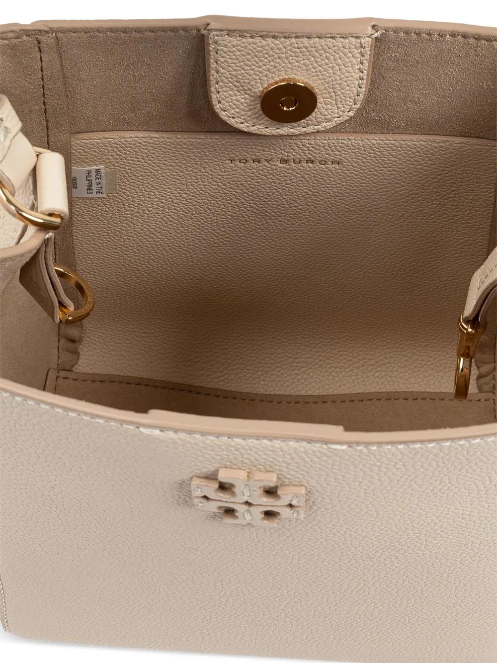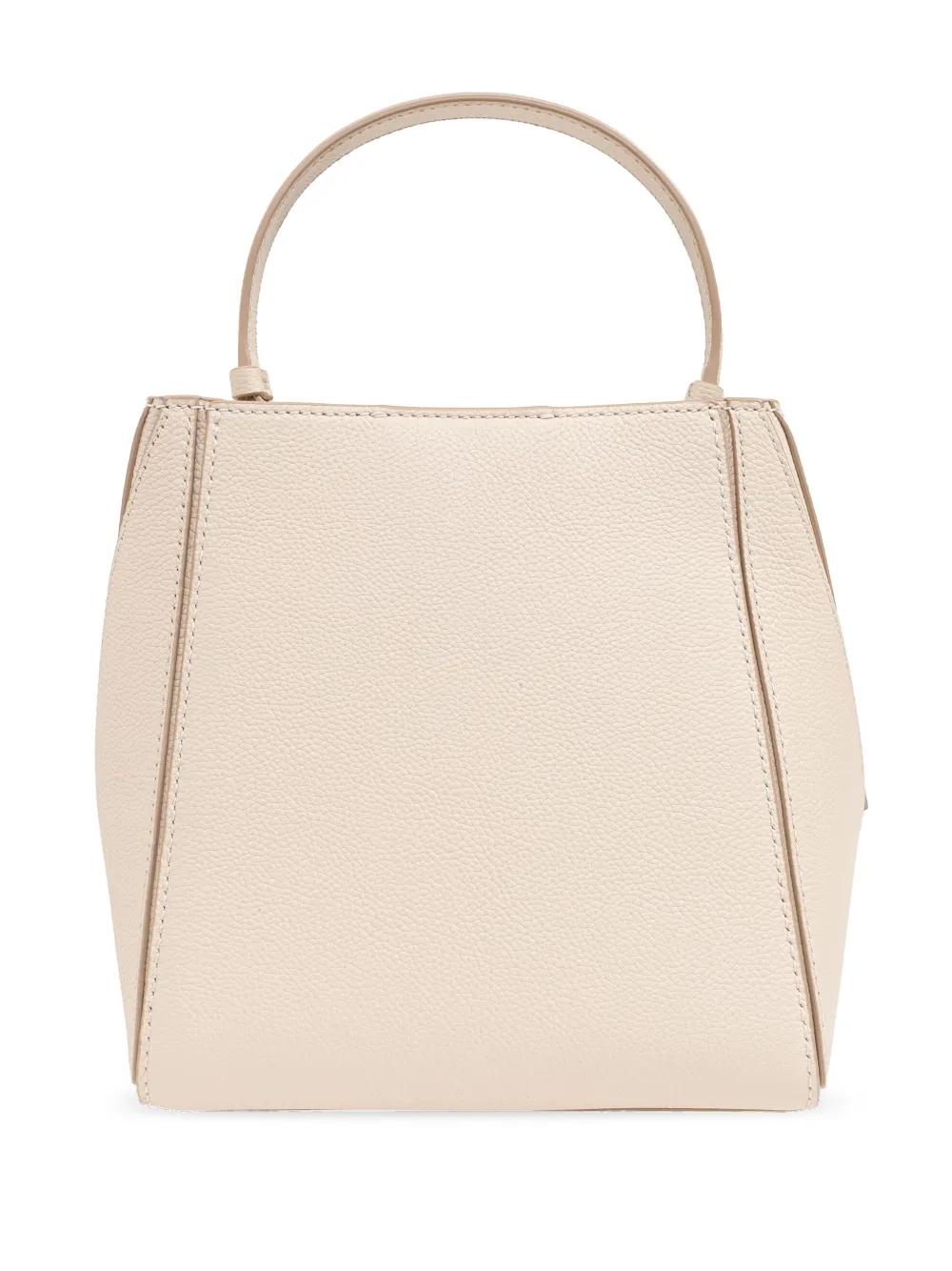 light beige calf leather grained texture tonal logo plaque adjustable detachable shoulder strap detachable top handles magnetic fastening main compartment internal slip pocket full lining gold-tone hardware