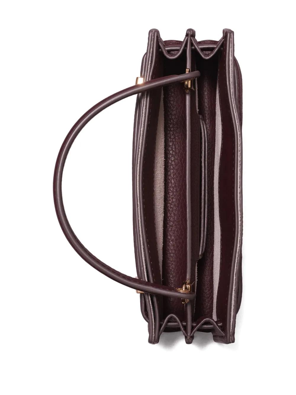 dark carmine top handle pebble texture gold-tone hardware detachable shoulder strap