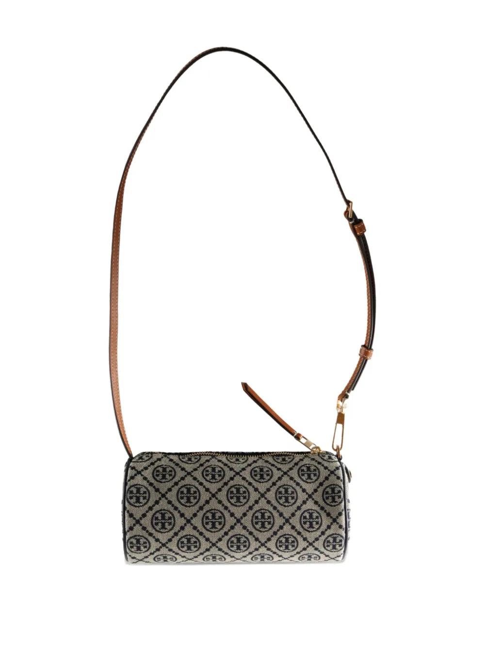 navy blue monogram pattern top zip fastening detachable shoulder strap main compartment