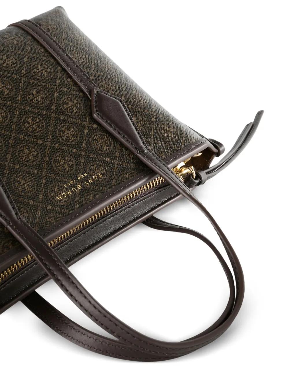 brown monogram pattern top handles gold-tone hardware zip fastening logo lettering