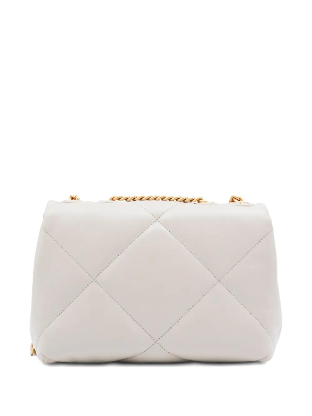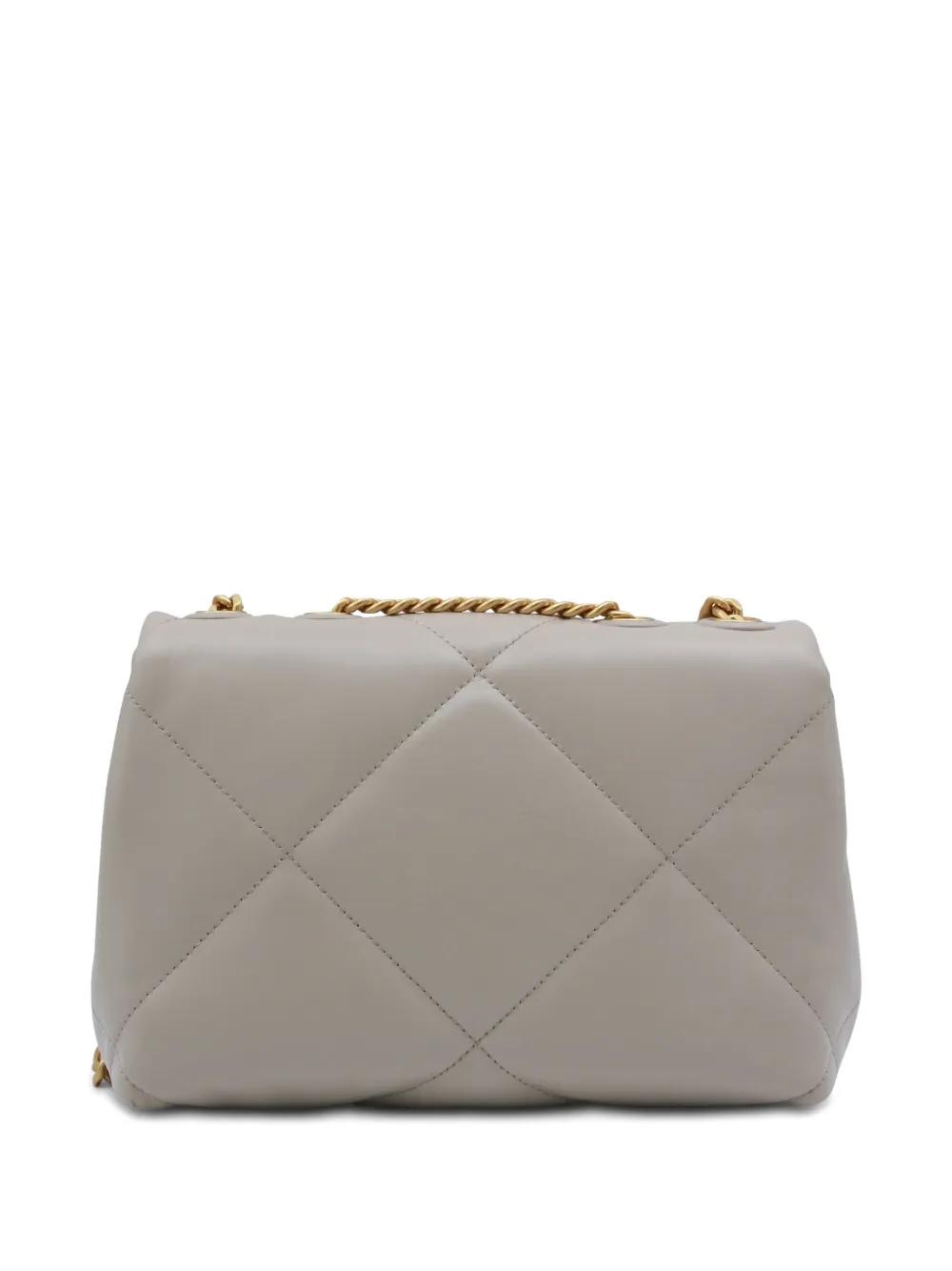 light stone quilted gold-tone hardware chain-link shoulder strap logo plaque leather