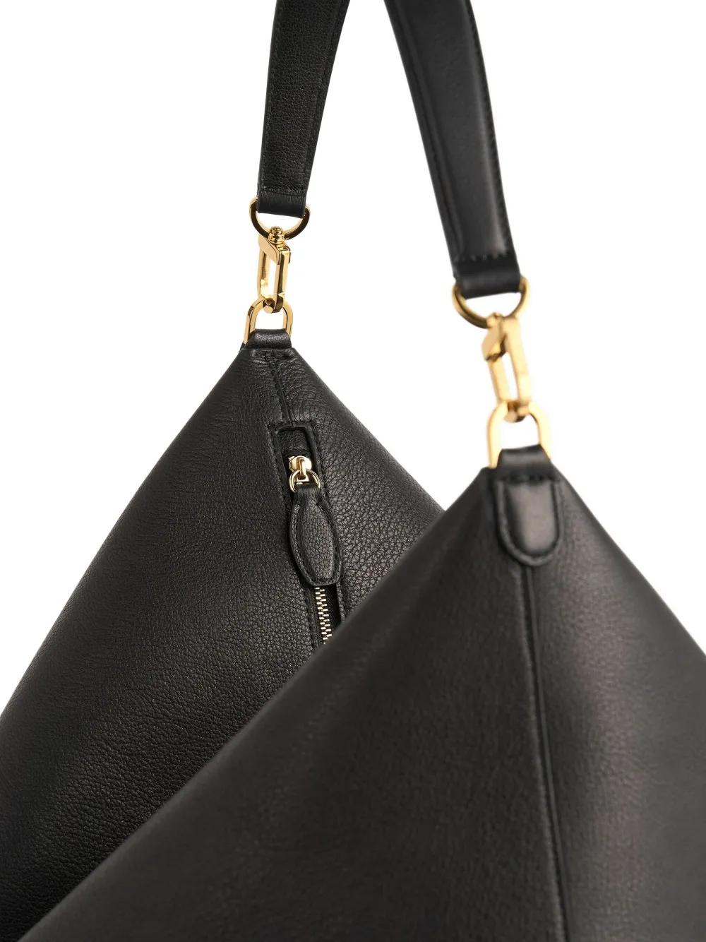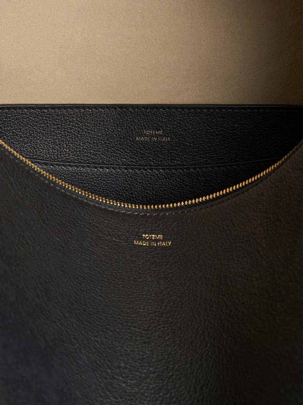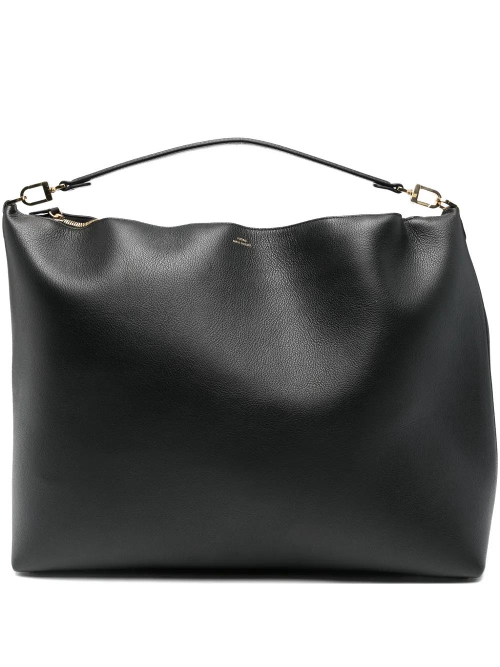 black grained leather top handle zip fastening gold-tone hardware rectangular shape