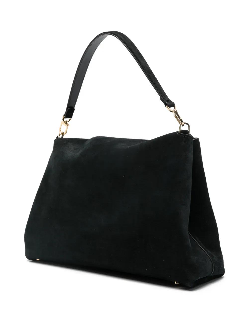 black suede gold-tone hardware top handle adjustable shoulder strap flap top T-lock fastening This piece comes complete with a protective dust bag.
