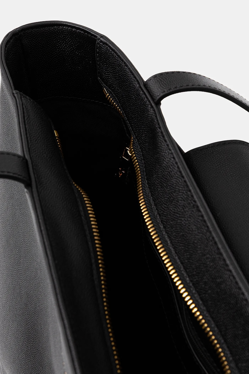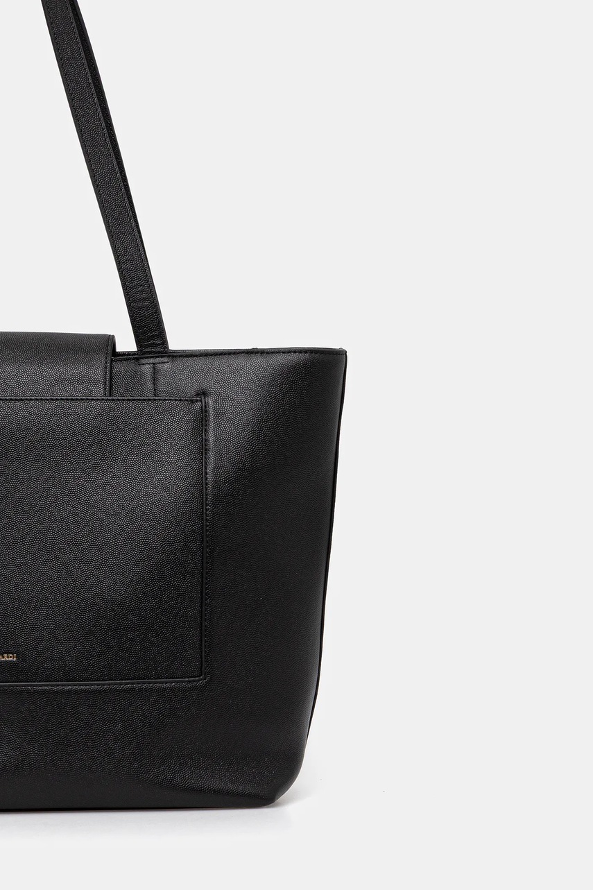Uwaga: oryginalna rozmiarówka produktów tej marki jest rozmiarówką włoską. Informujemy, że rozmiary na metkach mogą różnić się od zamawianych ze względu na zastosowany przelicznik. - Zapięcie na suwak i magnes. - Długie uchwyty dla komfortowego noszenia w dłoni lub na ramieniu. - Mieści format A4. - Model z podszewką. - Model wyposażony w metalowe nóżki, które zabezpieczają spód torebki. - Dołączony tekstylny worek zabezpiecza produkt przed kurzem. - Trzy kieszonki wewnętrzne: jedna zapinana na suwak, dwie wsuwane. - Z tyłu wsuwana, niezapinana kieszeń. - Długość uchwytów: 66 cm. - Głębokość: 13 cm. - Wysokość: 29,5 cm. - Szerokość u podstawy: 34 cm.
