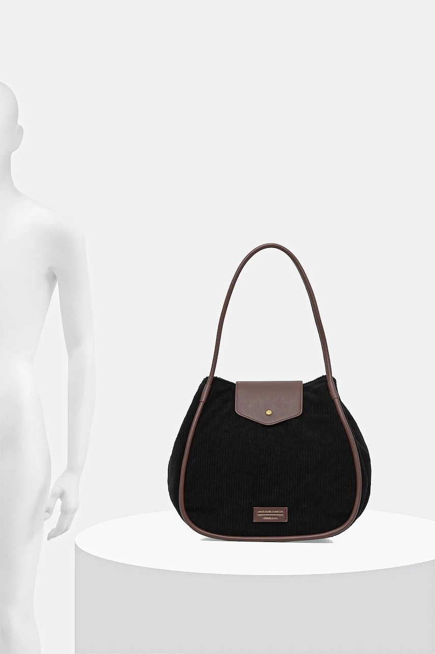 - Komora zapinana na magnes. - Kieszonka wewnętrzna zapinana na suwak. - Model z podszewką. - Mieści format A4. - Długie uchwyty dla komfortowego noszenia w dłoni lub na ramieniu. - Głębokość: 19,5 cm. - Wysokość: 31 cm. - Szerokość u podstawy: 32 cm. - Długość uchwytów: 62 cm.